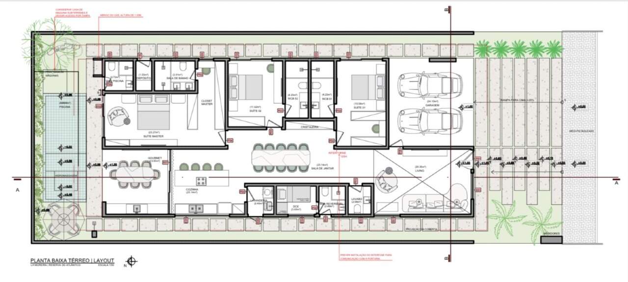 > Área de lazer com piscina, churrasqueira e quadra poliesportiva;