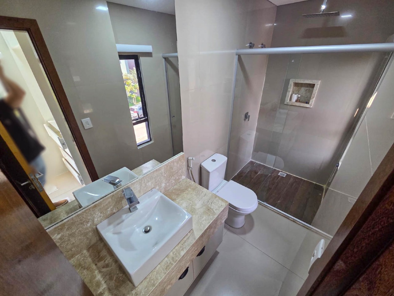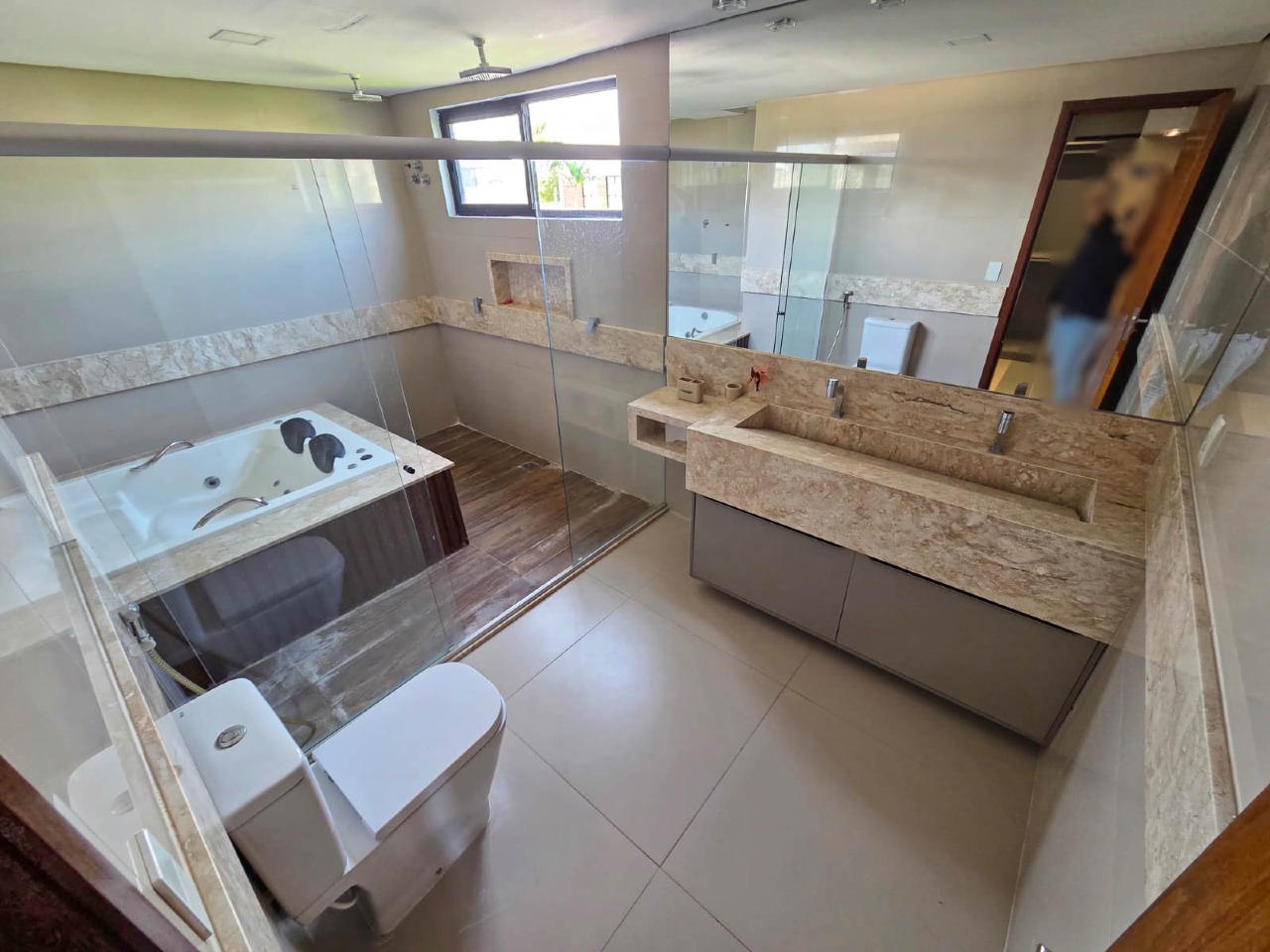 Excelente casa possuindo sala de estar e jantar, cozinha com área de serviço e despensa, escritório, quatro suítes, suíte master com hidromassagem, algumas com opção de closet e lavabo.