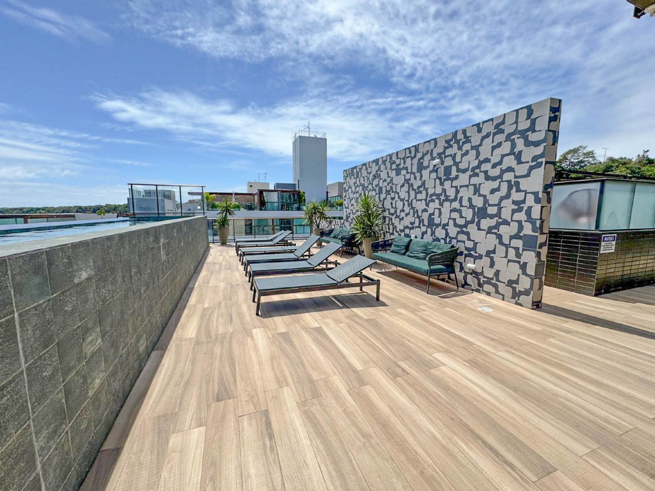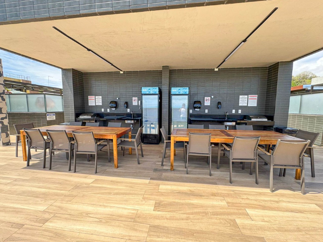 Apartamento com quarto amplo, cozinha com planejados e sala integrada ao acesso da cobertura, que oferece jacuzzi e espaço gourmet, ideal para aproveitar bons momentos.