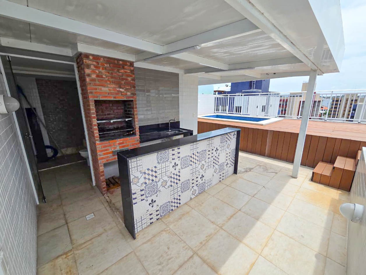 Cobertura com sala bem iluminada, cozinha com área de serviço, dois quartos, sendo um suíte, e banheiro social. O grande diferencial é a área privativa na cobertura, com piscina e espaço gourmet, ideal para momentos de lazer, confraternizações e para desfrutar de uma vista agradável com total privacidade.