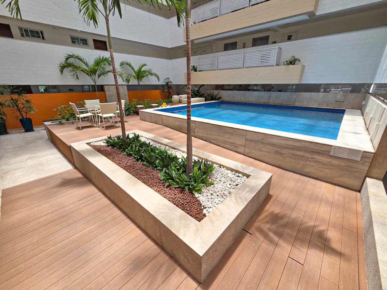 > Área de lazer com piscina;