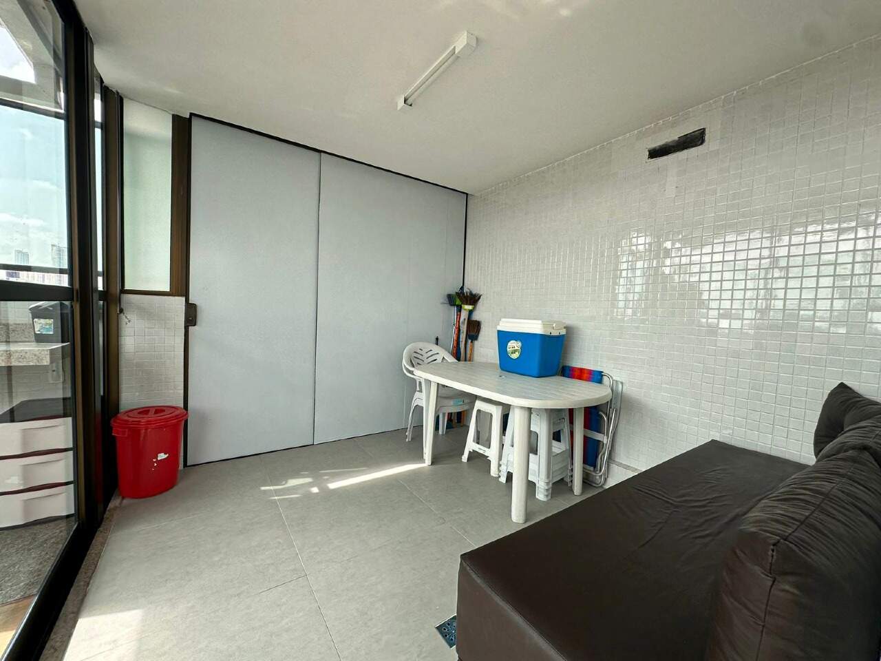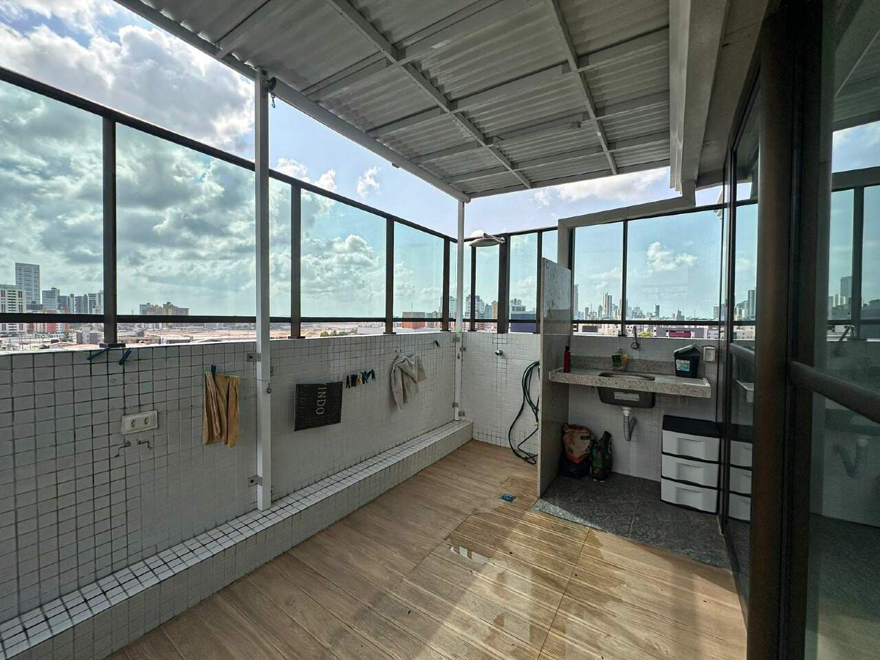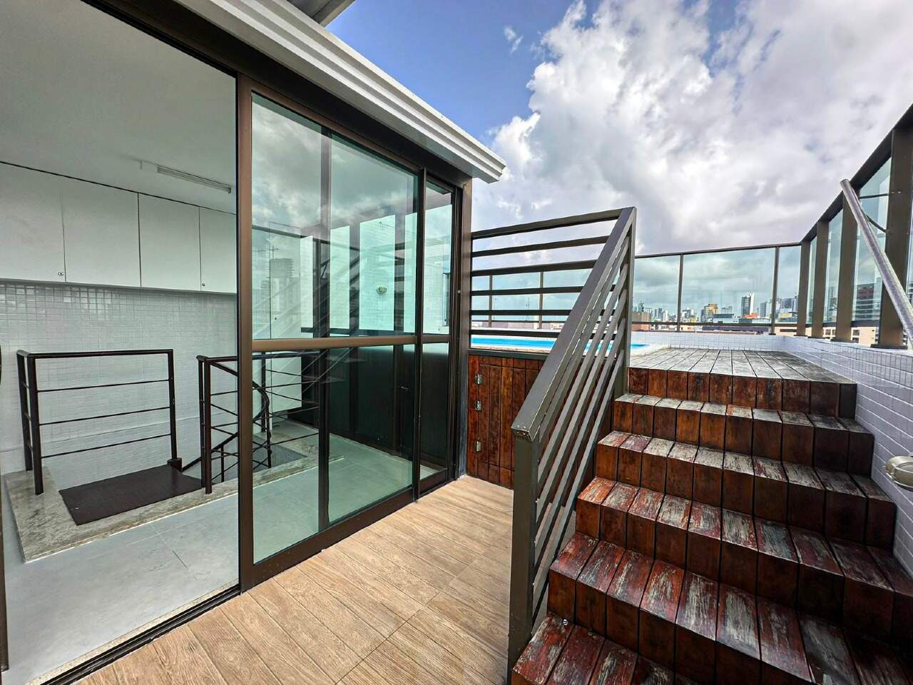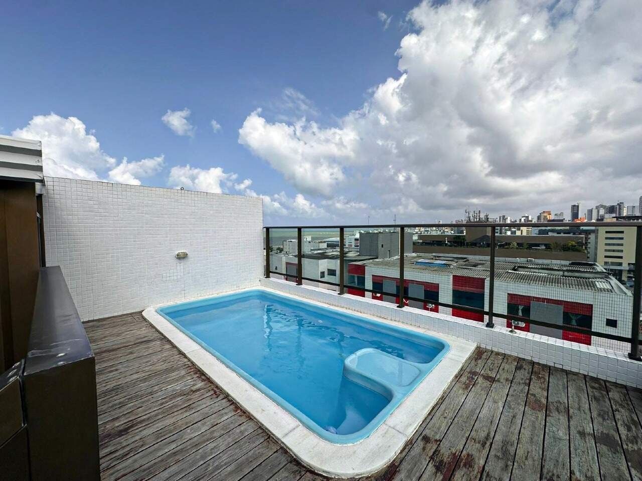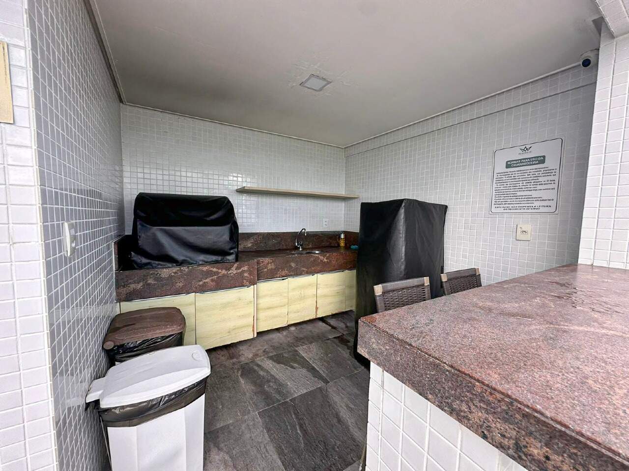 > Área de lazer com piscina e churrasqueira;
