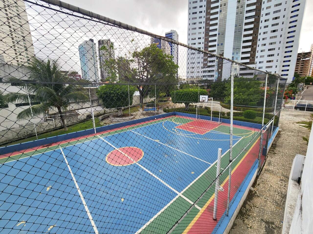 > Prédio com piscina, churrasqueira, academia, salão de festas, playground, quadra poliesportiva e praça;