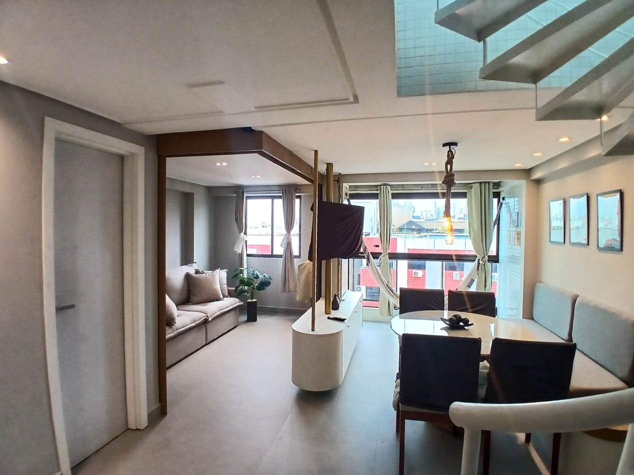 Esta cobertura duplex mobiliada vista mar combina uma excelente distribuição dos espaços com uma atmosfera acolhedora.