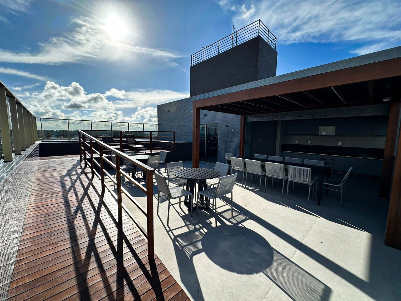 > Área de lazer com piscina e espaço gourmet;