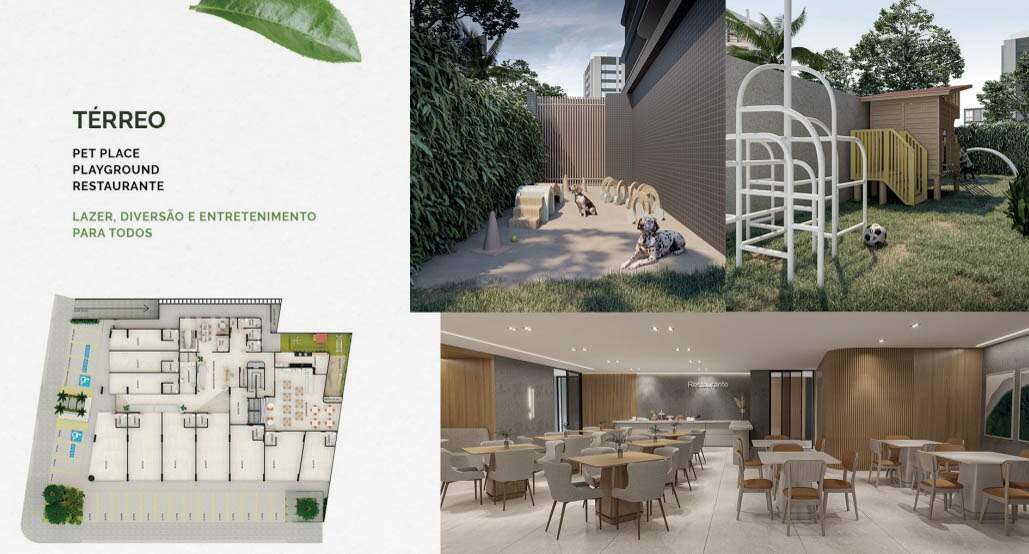O empreendimento tem uma vasta área de lazer com piscina, churrasqueira, espaço gourmet, lavanderia compartilhada, sala de reunião, coworking, restaurante, bicicletário, área pet, academia, playground, elevadores e muito mais para garantir a sua diversão.