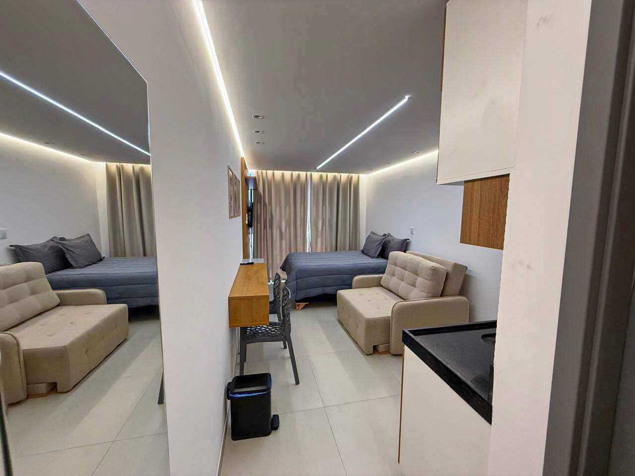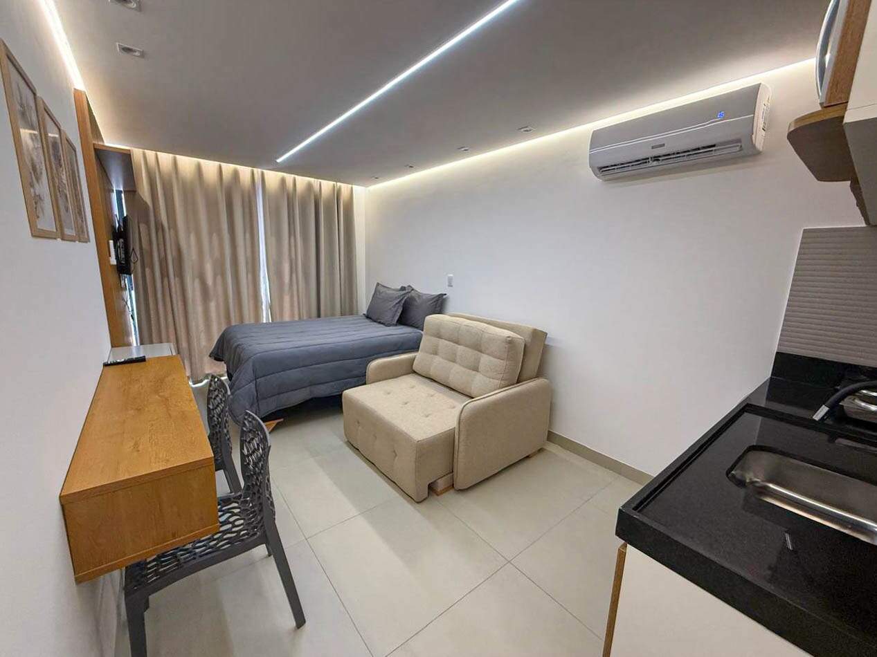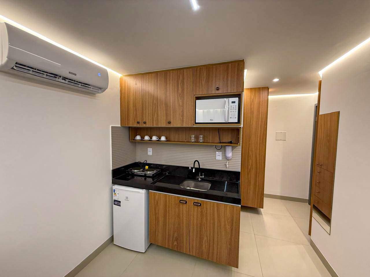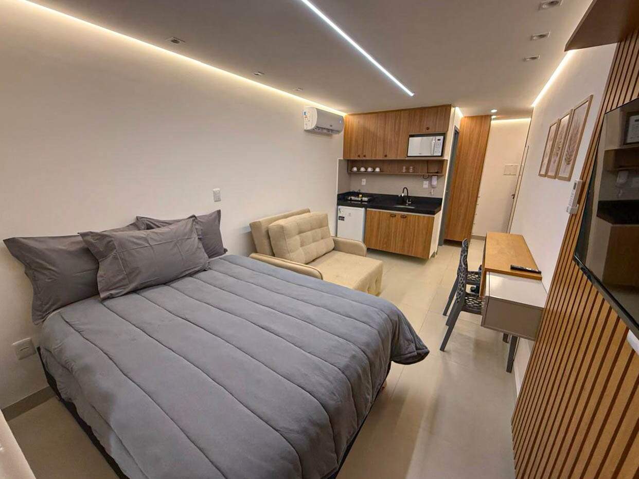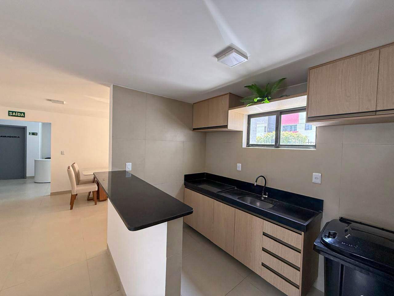 Apartamento com um quarto amplo, cozinha de apoio com móveis projetados e um banheiro social, oferecendo praticidade, conforto e um excelente aproveitamento de espaço — ideal para quem busca funcionalidade no dia a dia.