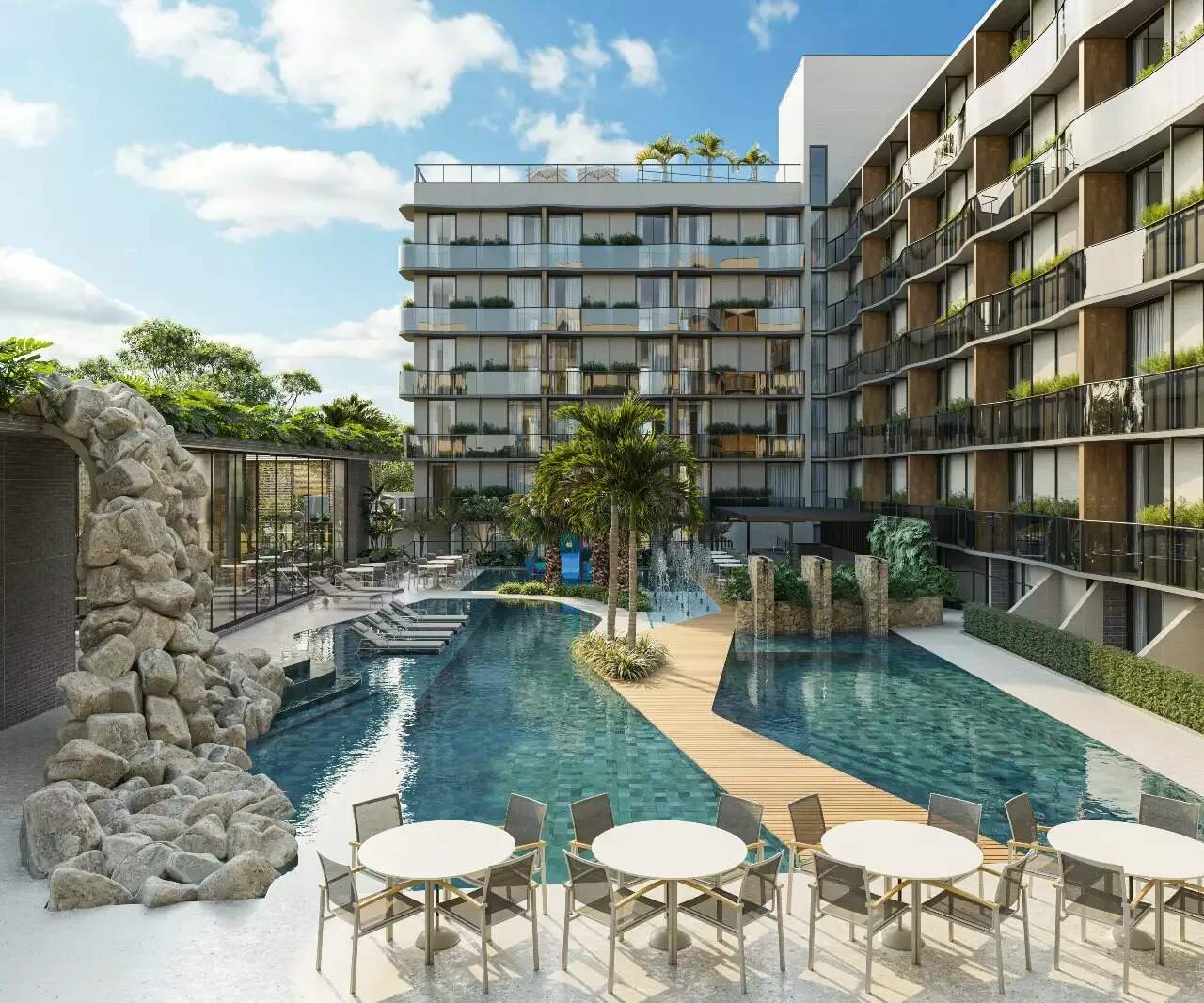 > Área de lazer com piscina adulta e infantil;