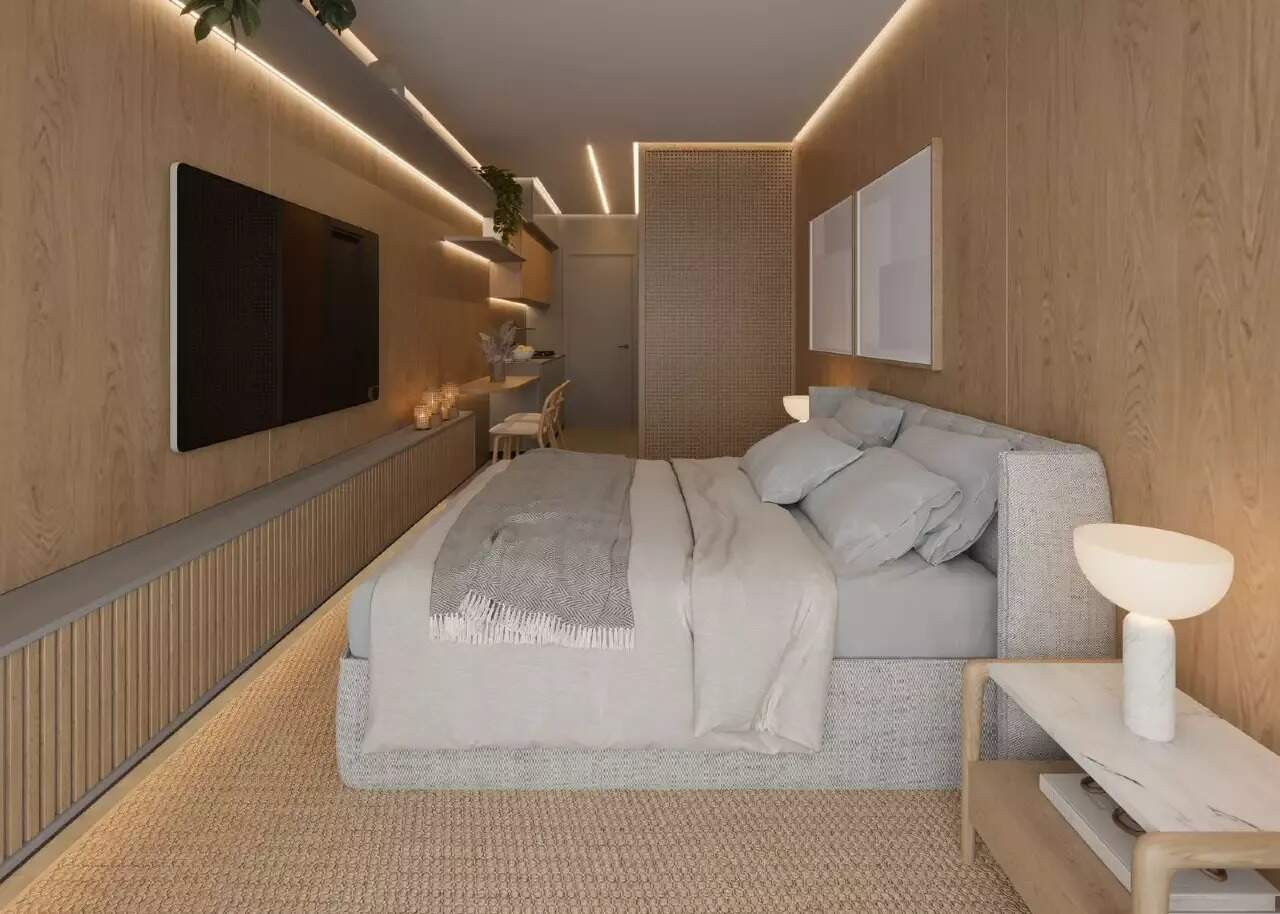Este flat conta com um quarto acolhedor, cozinha de apoio equipada e um banheiro social, perfeito para quem valoriza funcionalidade sem abrir mão do bem-estar.