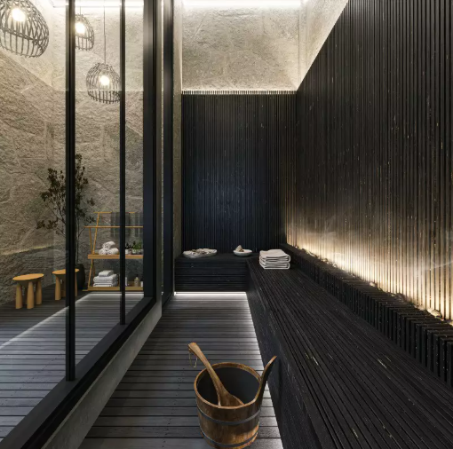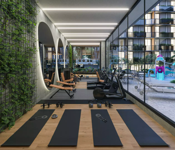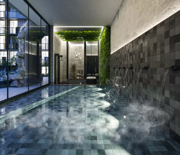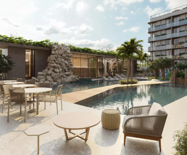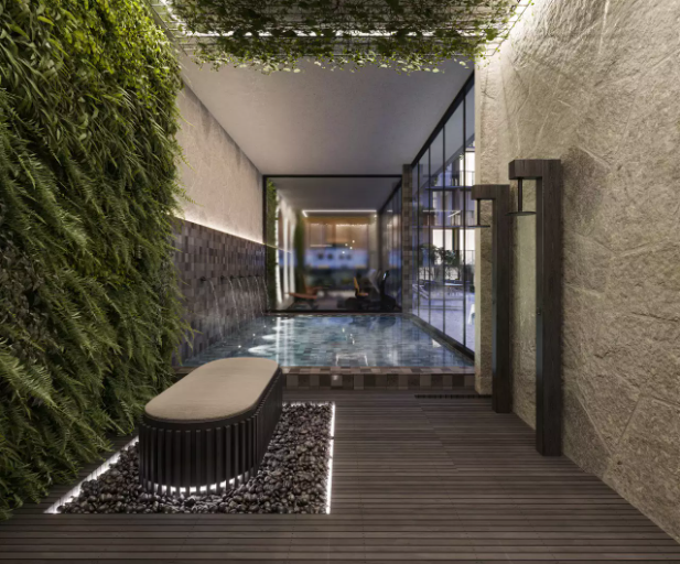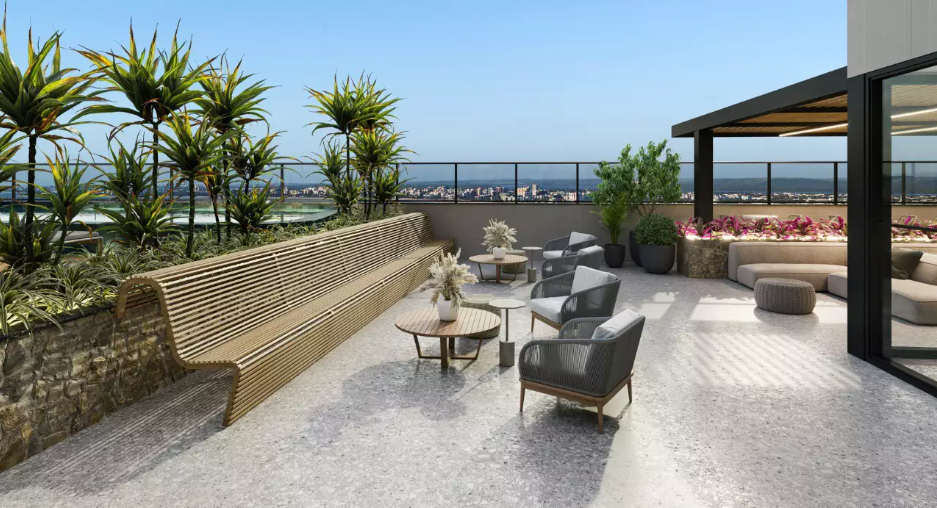 > Área de lazer com piscina, churrasqueira, espaço gourmet e sauna.