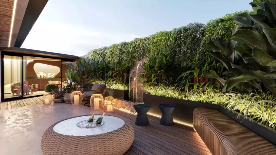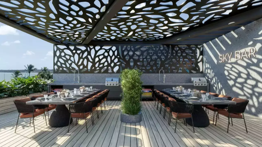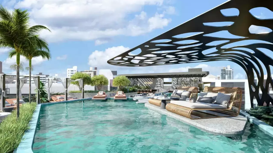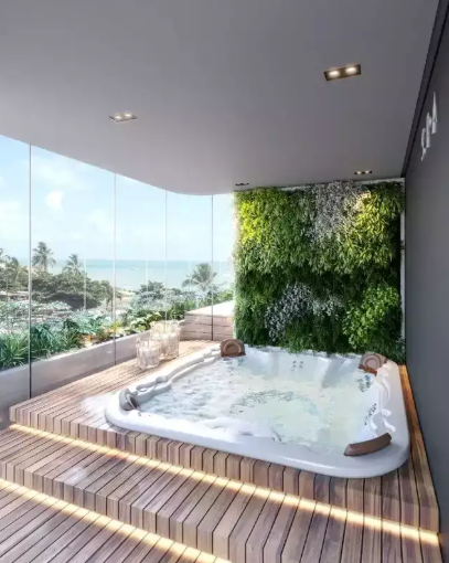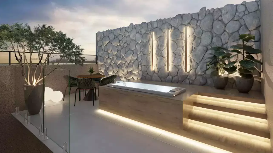 > Área de lazer com piscina, churrasqueira, hidromassagem e sauna;