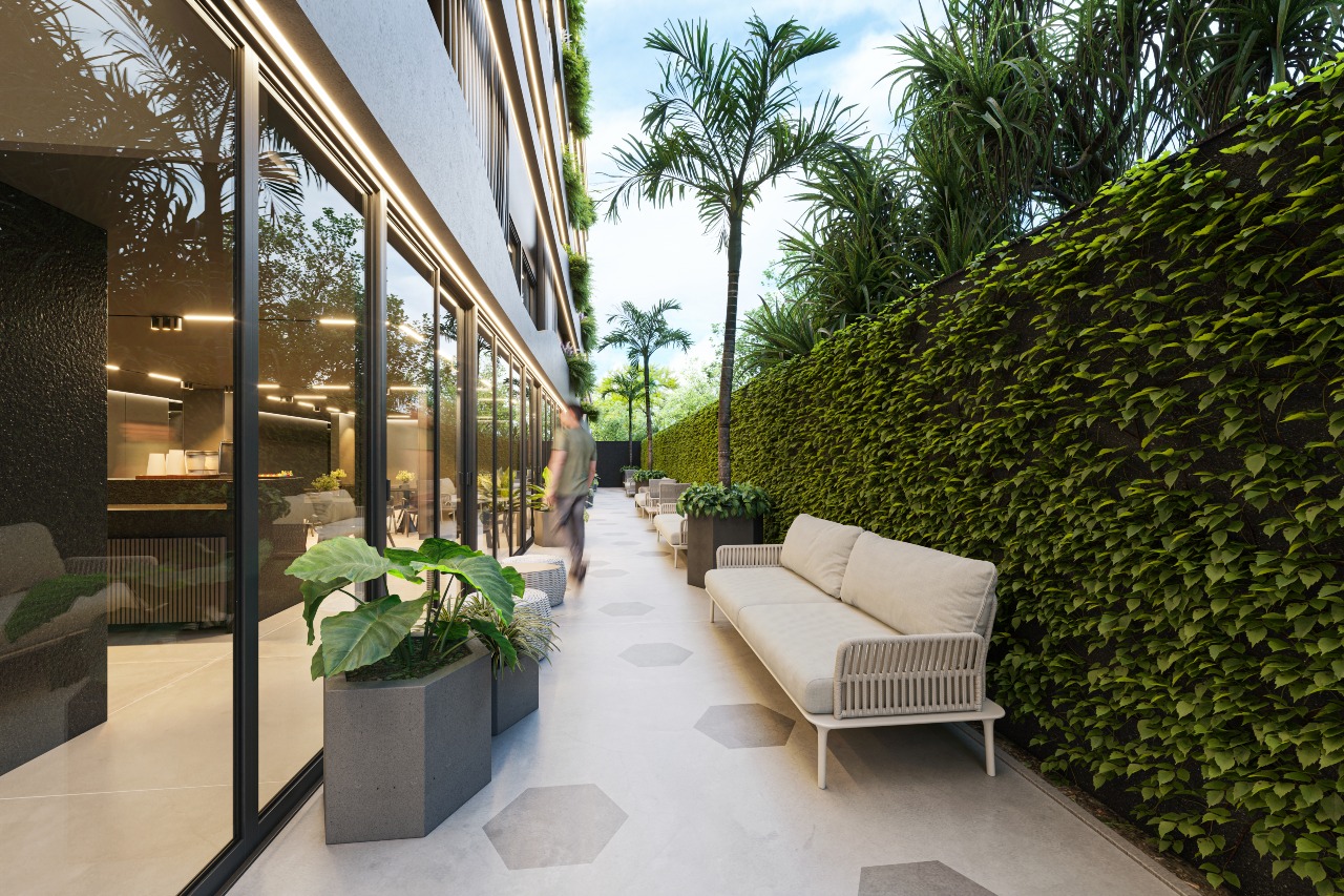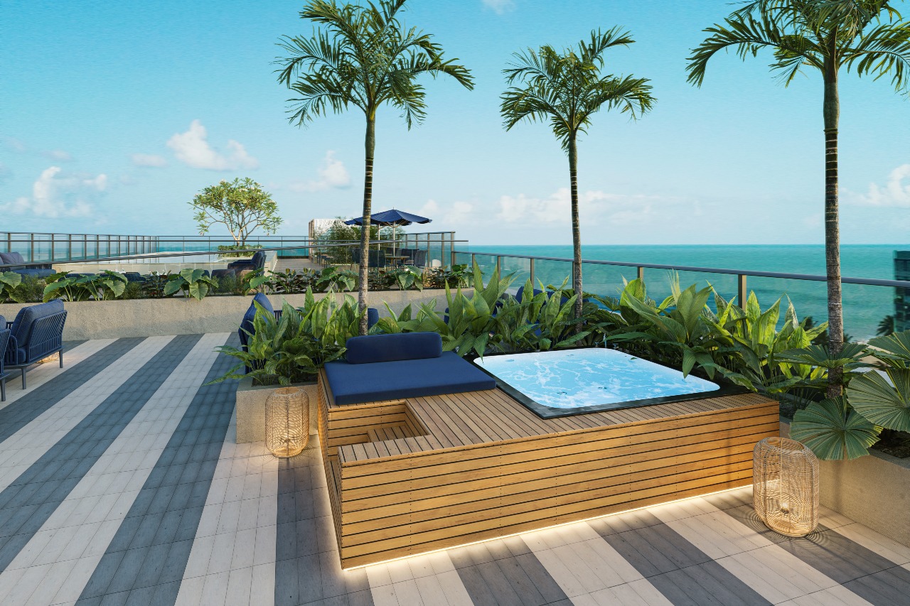 Em localização estratégica, cercado por bares, restaurantes, conveniências, supermercados, farmácias, academias, lavanderias, cafeterias e quiosques, ficando a somente 147 metros da orla da Praia de Cabo Branco.