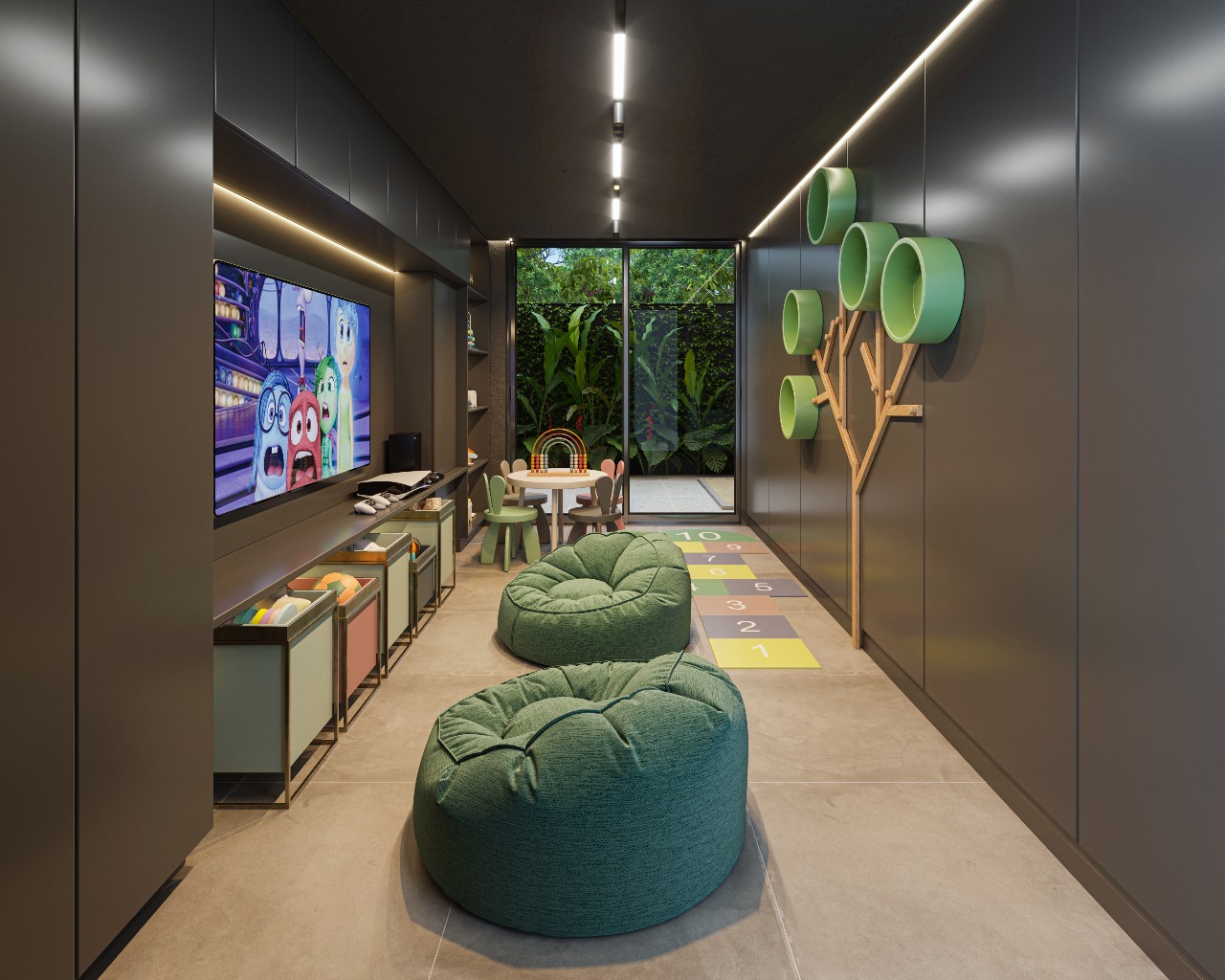 > Área de lazer com piscina espaço gourmet e churrasqueira;
