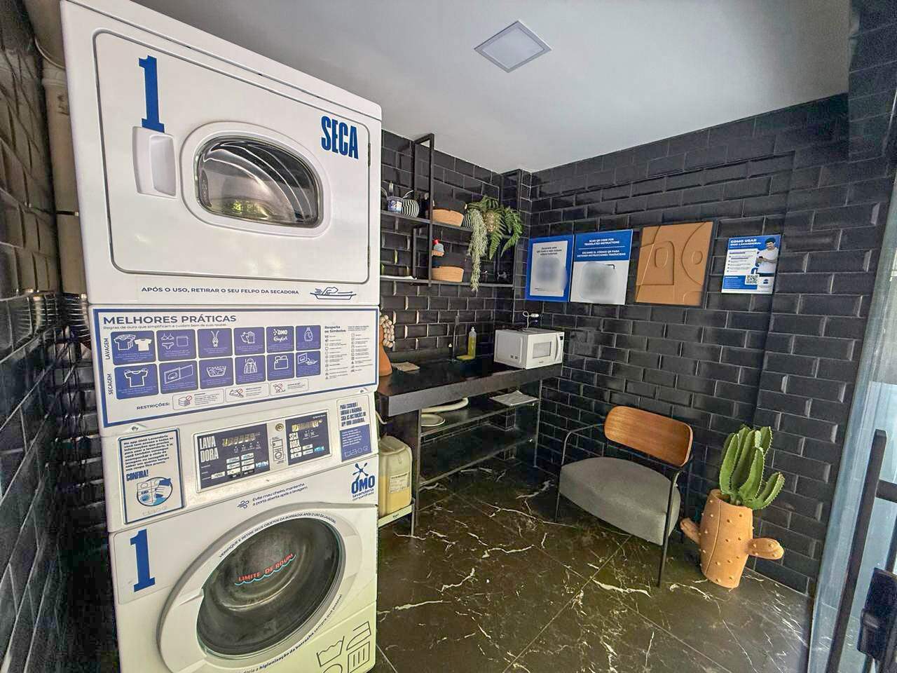> As áreas comuns do prédio dispõem de uma academia e lavanderia;