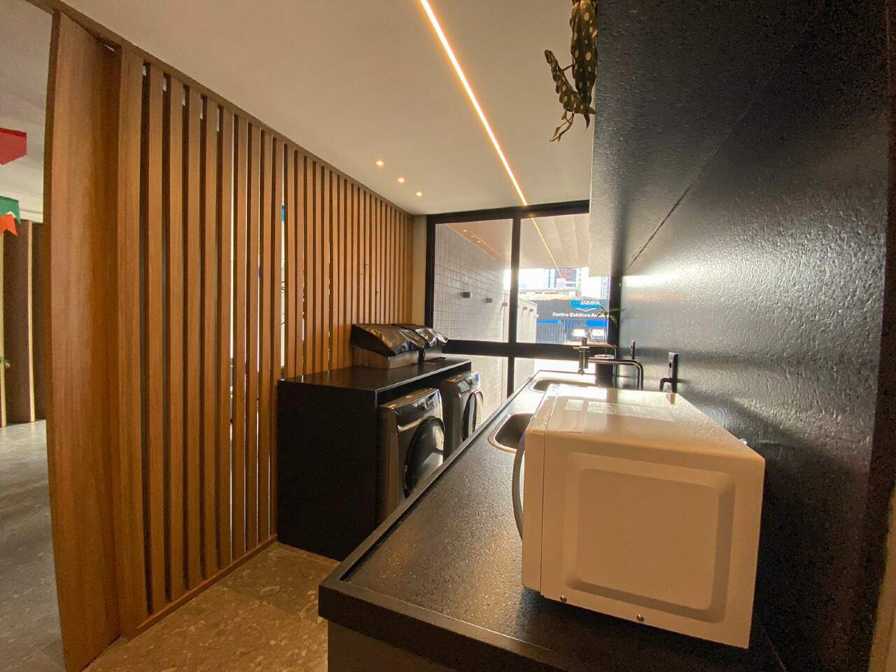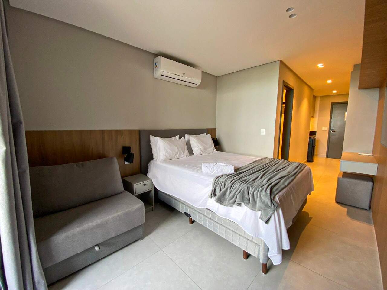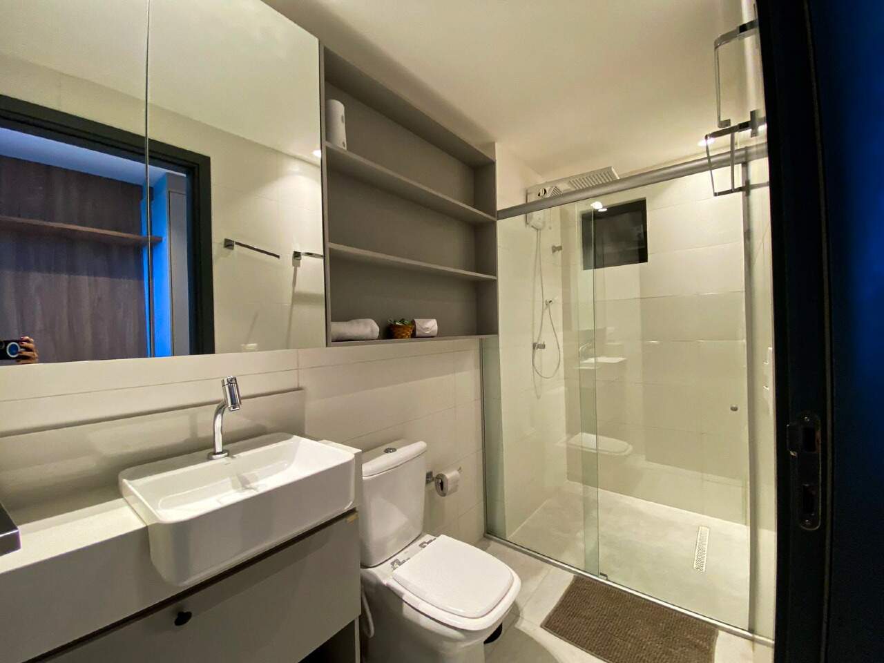 Este flat foi planejado para quem valoriza conforto e praticidade. Conta com quarto aconchegante, cozinha de apoio com móveis projetados, banheiro moderno e uma área privativa incrível com vista panorâmica para o mar, perfeita para seus momentos de lazer e relaxamento.