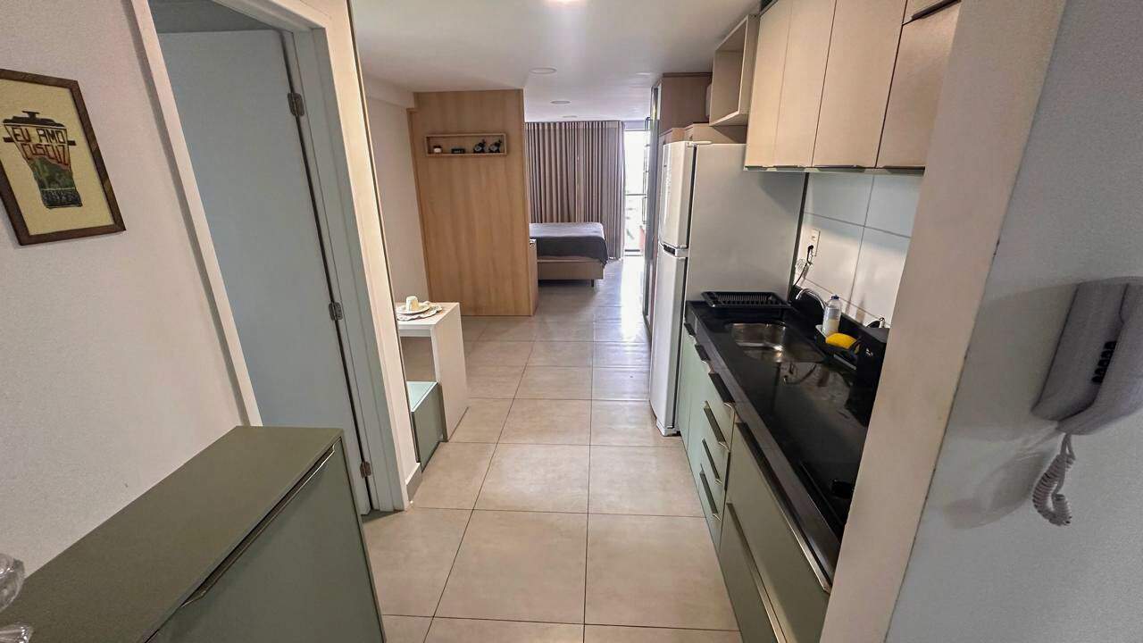 Este flat conta com um quarto confortável, cozinha de apoio funcional e banheiro social, ideal para quem busca praticidade no dia a dia sem abrir mão do bem-estar. Um imóvel compacto, mas pensado para oferecer conforto e conveniência na medida certa.