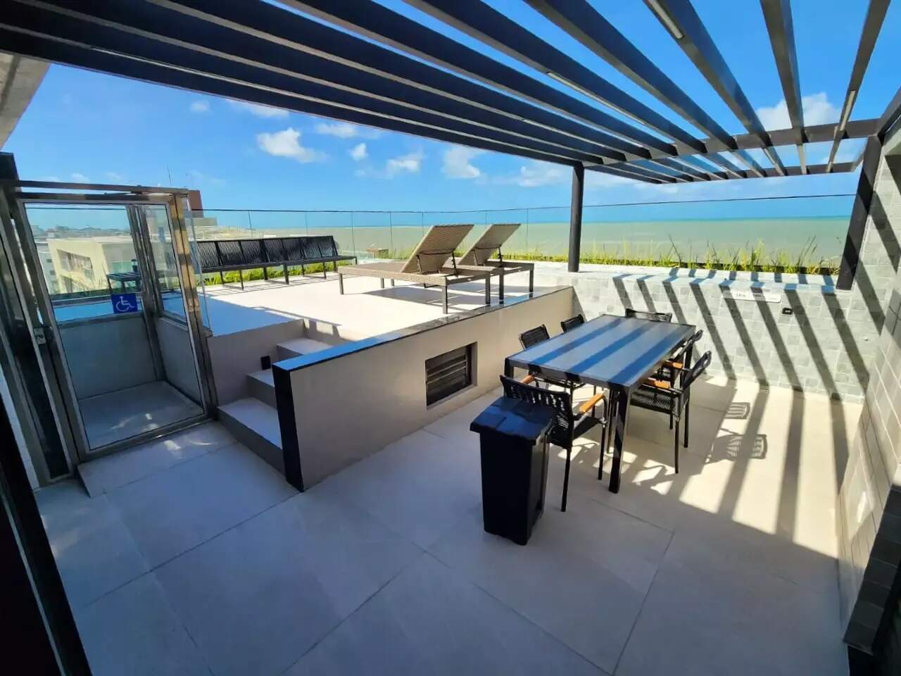 > Área de lazer com piscina e churrasqueira;