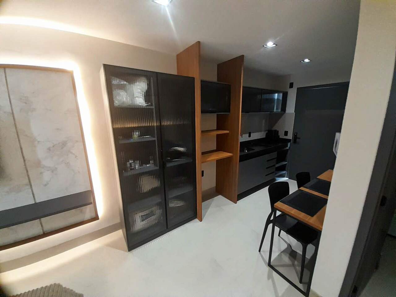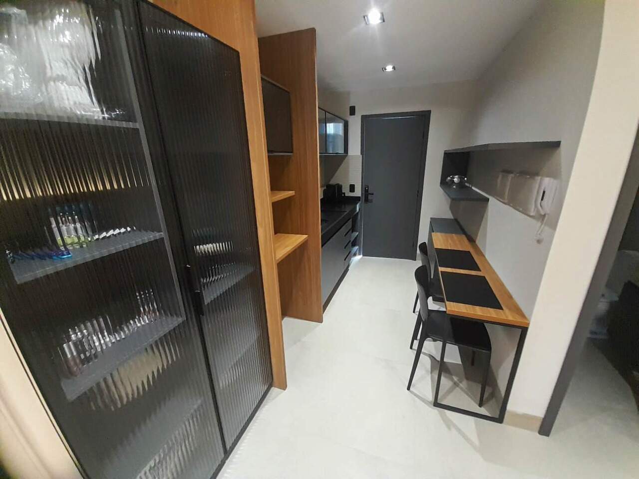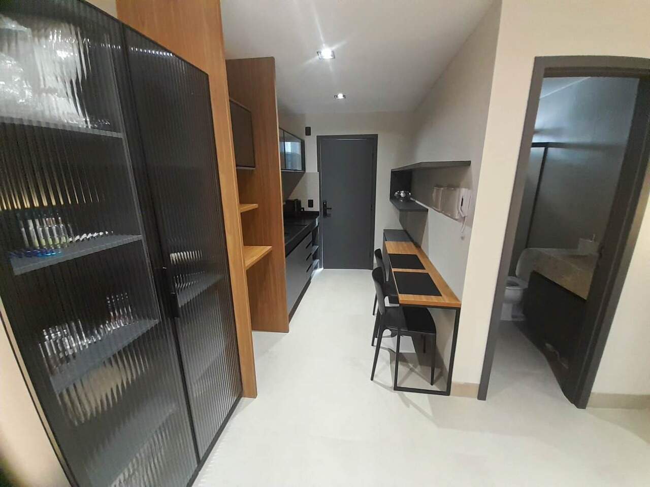 Este flat conta com um quarto aconchegante, um banheiro funcional e uma cozinha de apoio, ideal para quem busca praticidade no dia a dia. Um espaço moderno e versátil, perfeito para morar ou até mesmo investir.