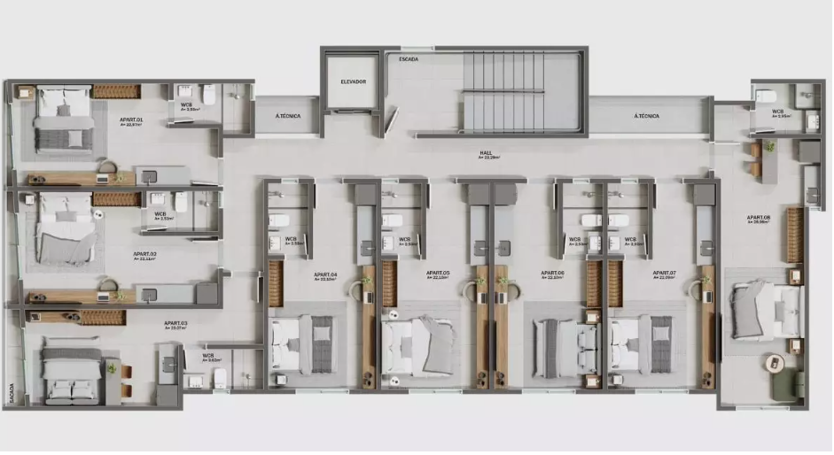 O imóvel conta com um quarto, um banheiro e cozinha de apoio, oferecendo tudo o que você precisa em um espaço bem distribuído e fácil de manter. Perfeito para morar ou investir, com a praticidade que combina com um estilo de vida moderno e descomplicado.