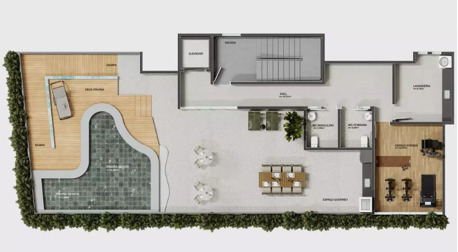 > Academia e espaço gourmet;