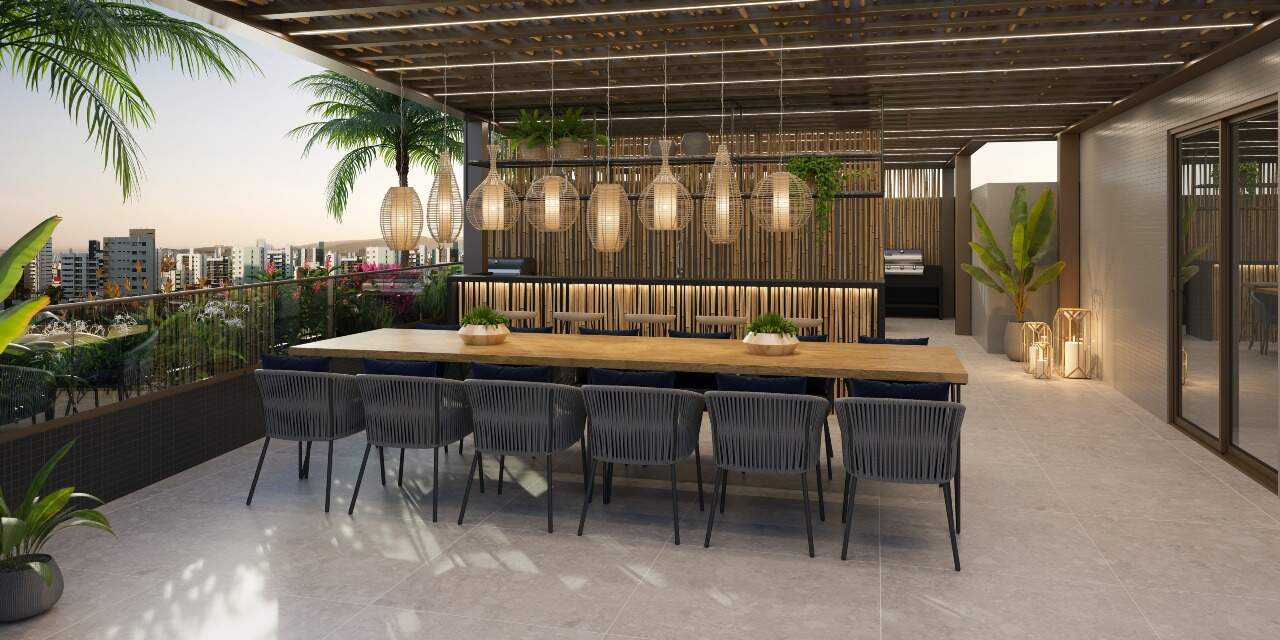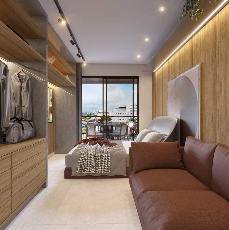 Flat com um quarto, banheiro, cozinha e ambiente bem distribuído. Localizado em um dos bairros mais valorizados de João Pessoa.