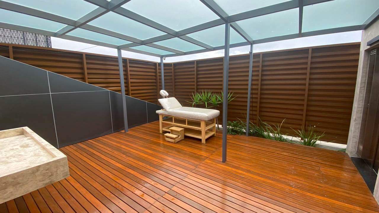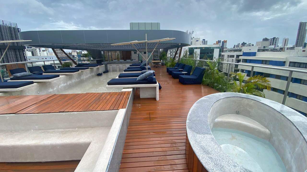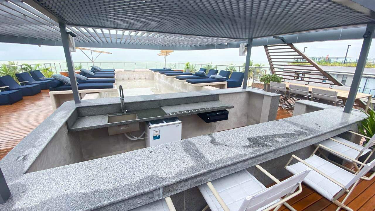 > Área de lazer com piscina, bar molhado e hidromassagem;