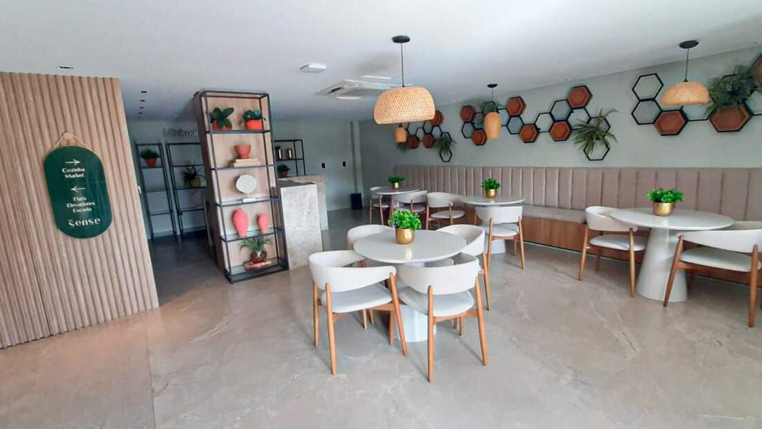 > Área de lazer com piscina e churrasqueira;