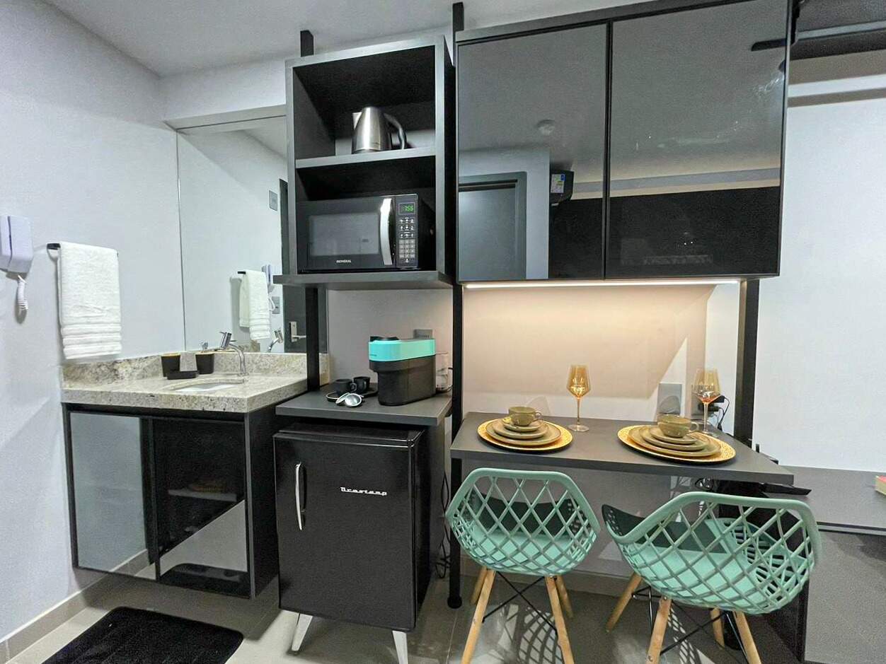 Flat à beira-mar com um quarto aconchegante, varanda perfeita para relaxar, cozinha de apoio funcional e um banheiro. Um espaço compacto, moderno e cheio de conforto, com o privilégio de viver de frente para o mar!