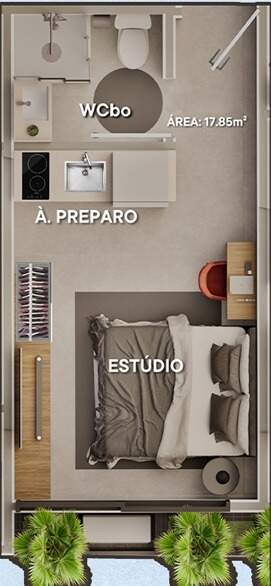 Flat aconchegante, ideal para quem busca praticidade no dia a dia. Conta com um dormitório confortável, cozinha de apoio funcional e um banheiro social.