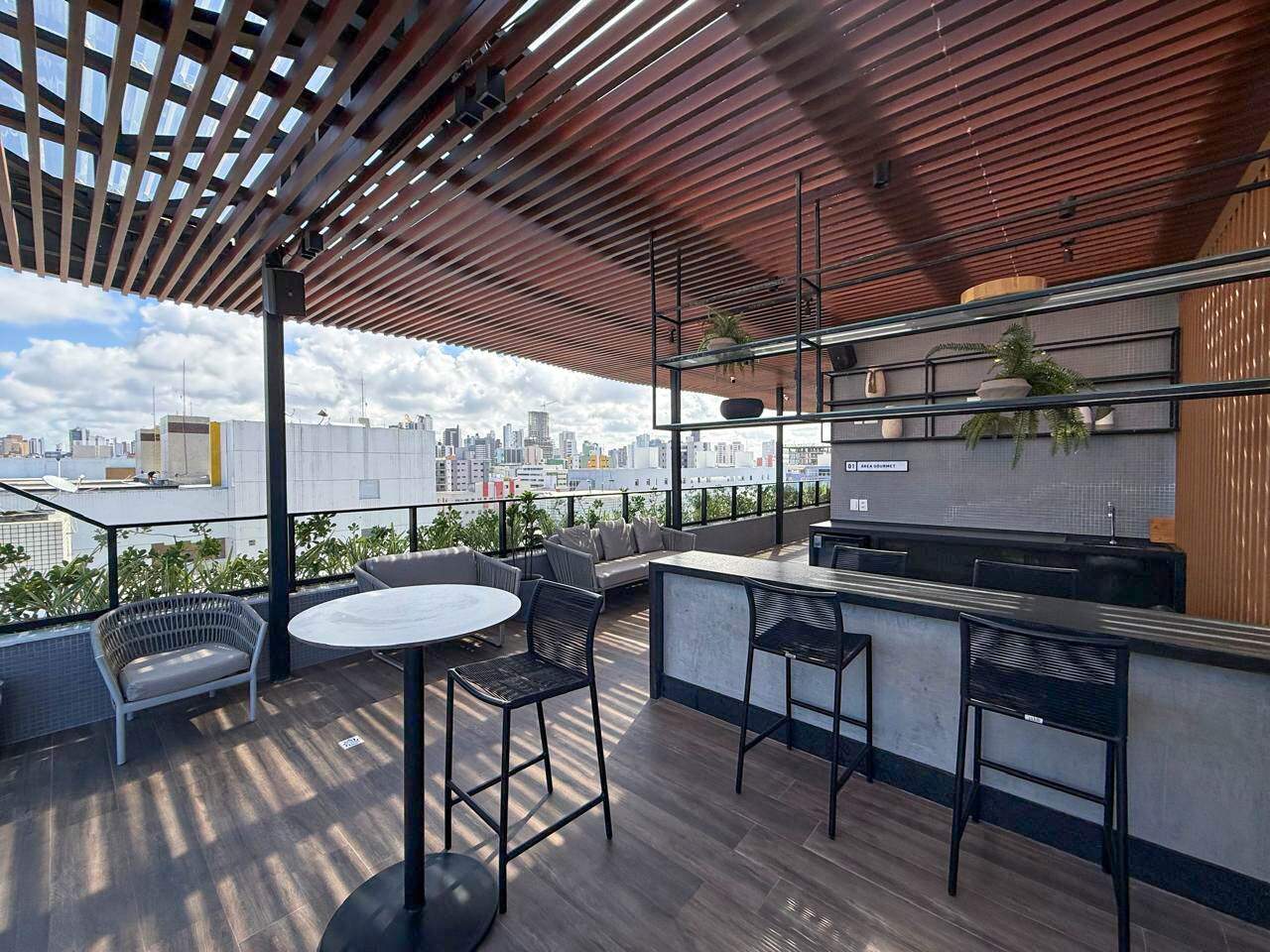 Flat completo, com quarto aconchegante, cozinha de apoio e banheiro social, ideal para quem busca praticidade e conforto.