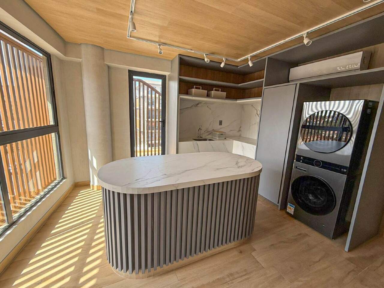 > Lavanderia, salão de festa e academia;