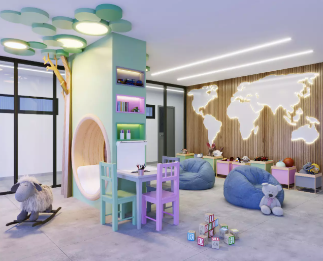 > Academia e salão de jogos;