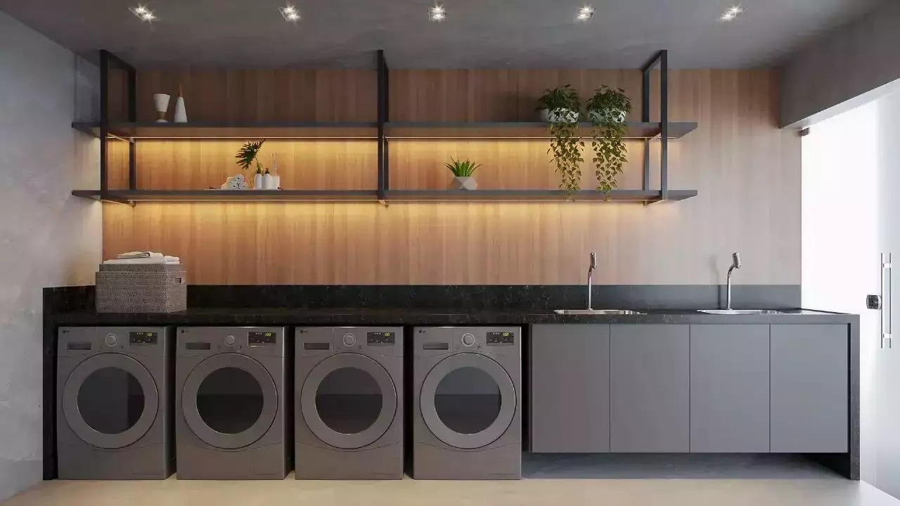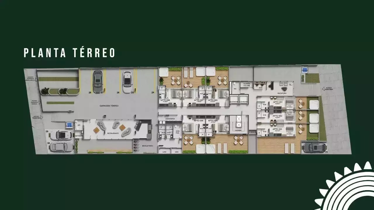 > Áreas comuns como academia, quadra poliesportiva, salão de jogos, salão de festas, lavanderia e playground;