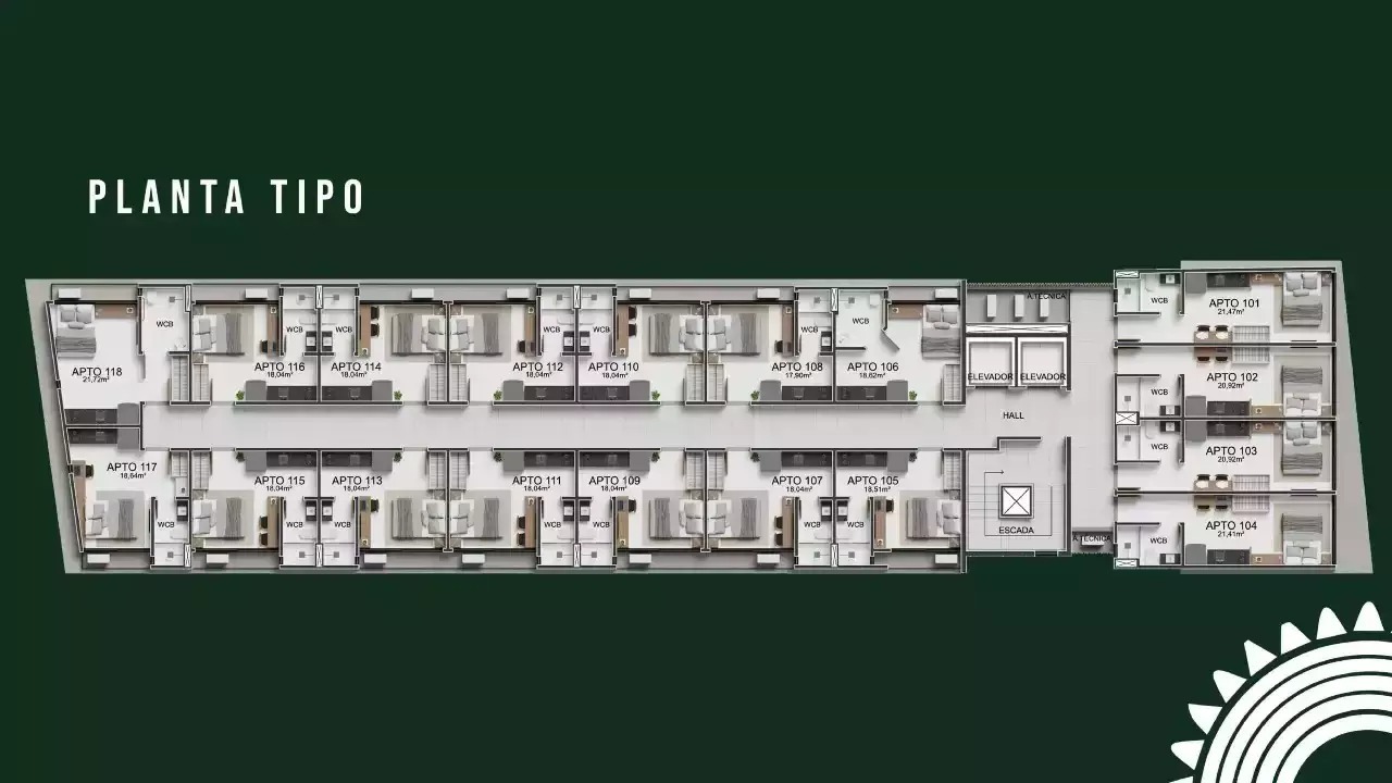 Flat com quarto integrado à cozinha de apoio e banheiro social! Com uma ótima distribuição do seu espaço interno para te proporcionar conforto e comodidade!