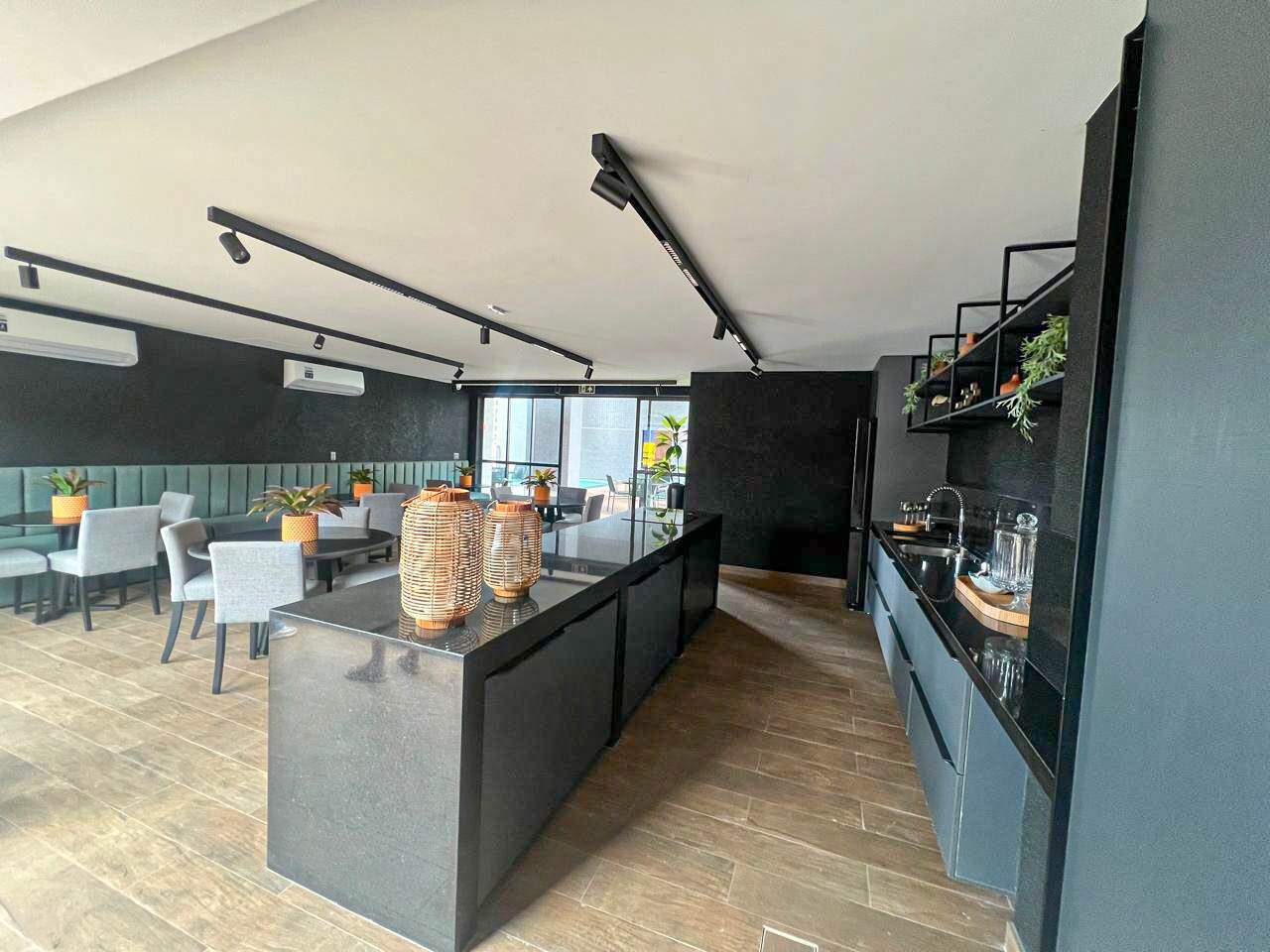 Flat moderno com quarto aconchegante, cozinha de apoio e banheiro social. Perfeito para quem busca praticidade no dia a dia ou deseja investir em uma excelente opção de renda!