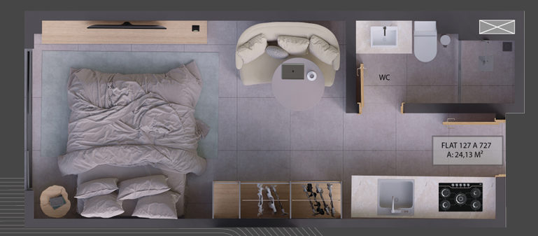 Esse flat é ideal para quem busca praticidade e conforto no dia a dia. Com um quarto super aconchegante, um banheiro funcional e uma cozinha de apoio que resolve tudo sem complicação, aqui você vive leve e com tudo no lugar certo. Perfeito para quem quer morar ou investir.