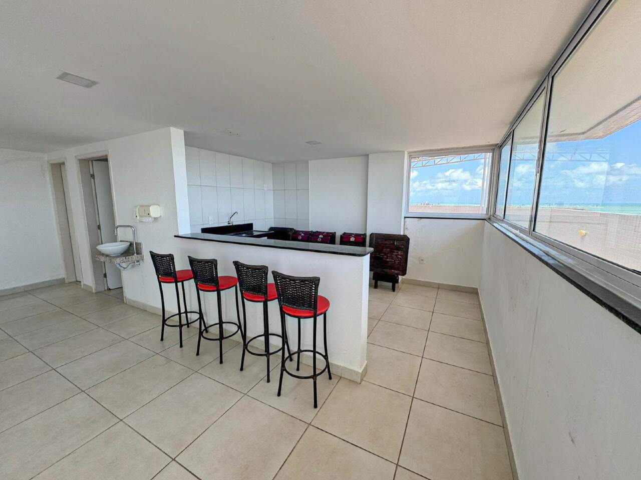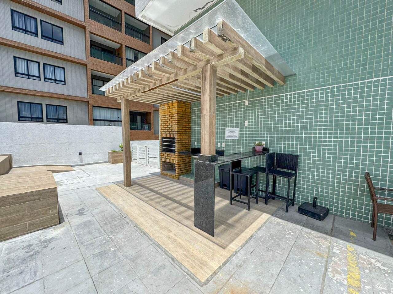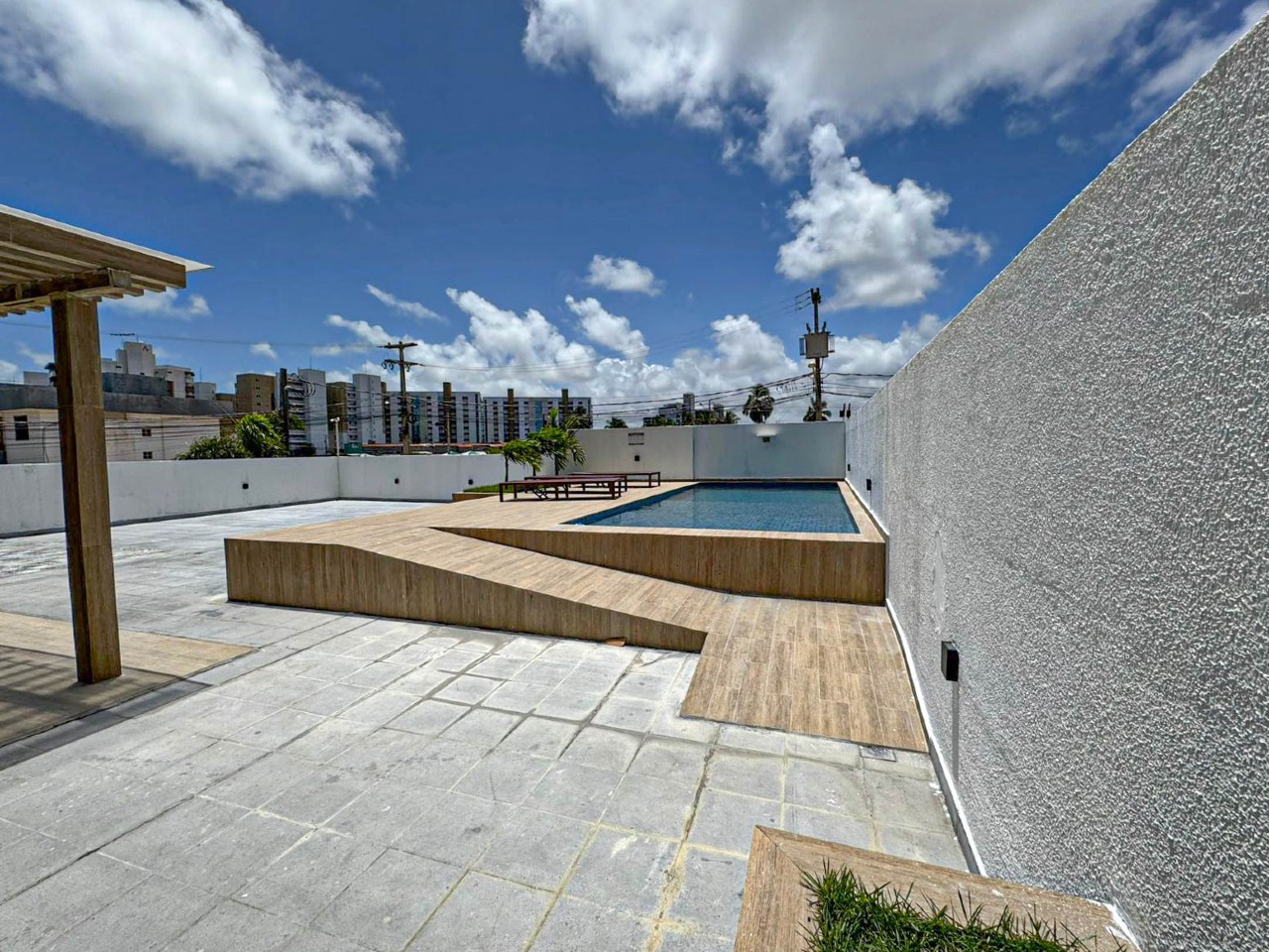 > Área de lazer com piscina e churrasqueira;