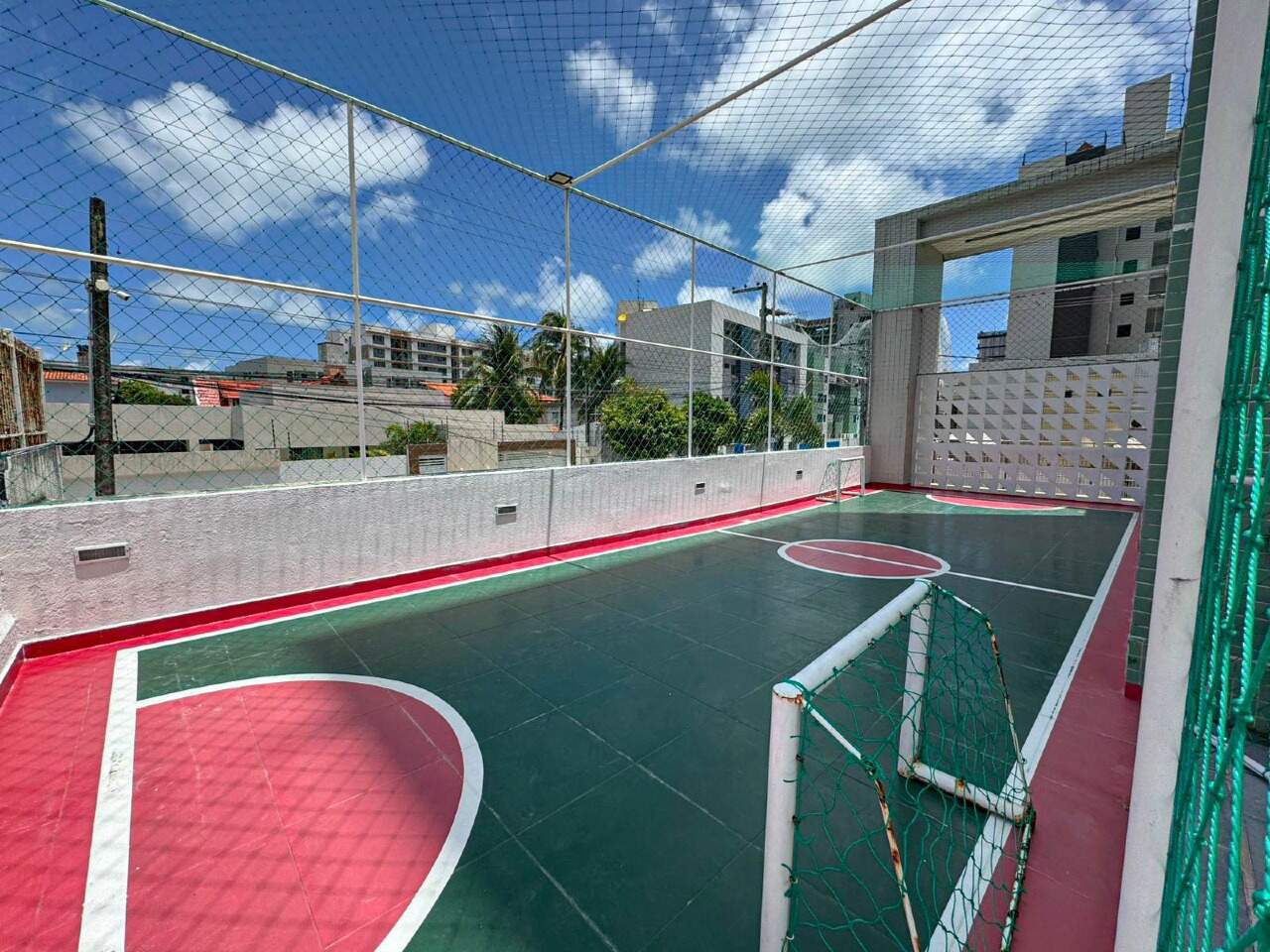 > Lavanderia, quadra poliesportiva e salão de festa;