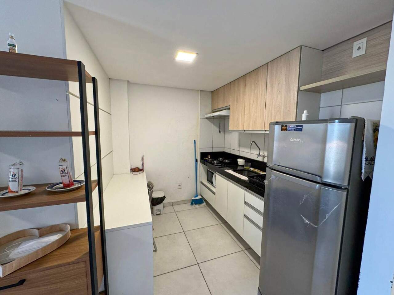 Apartamento com um quarto aconchegante, sala de apoio funcional, cozinha prática e um banheiro social — ideal para quem busca conforto e praticidade no dia a dia.