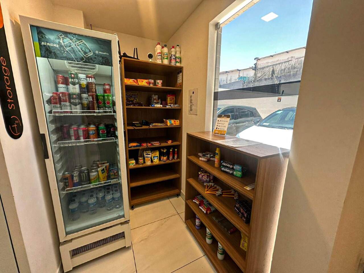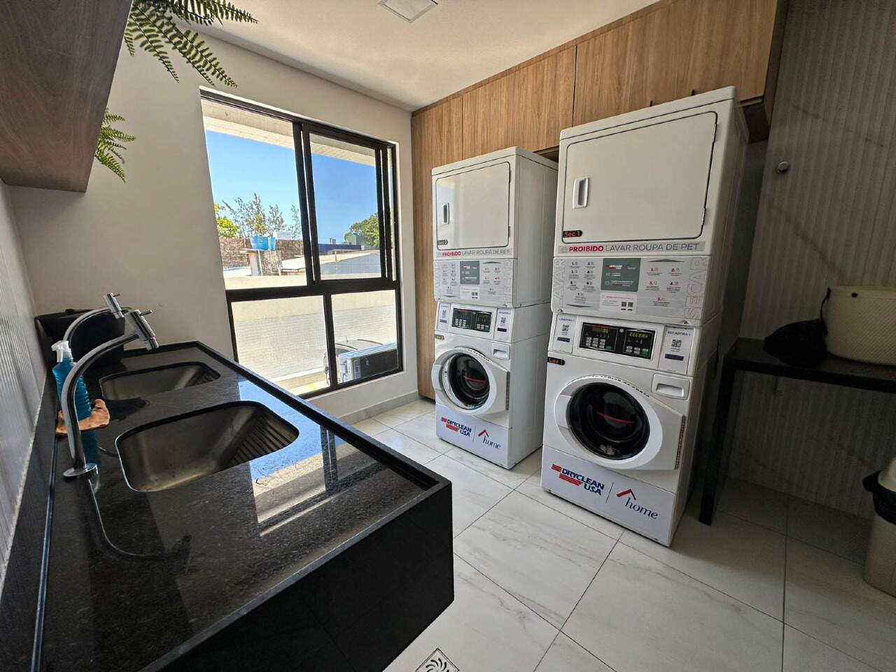 > Lavanderia, sala de reunião, academia, mini mercado e salão de festa;