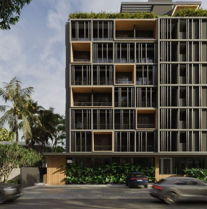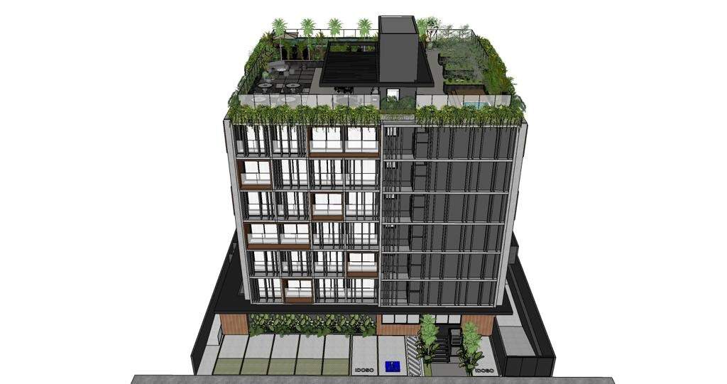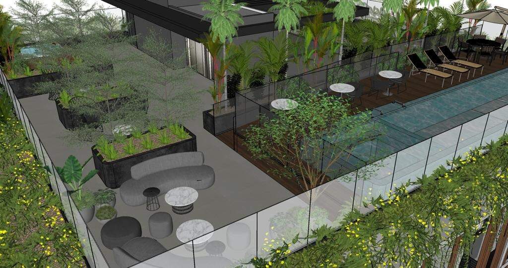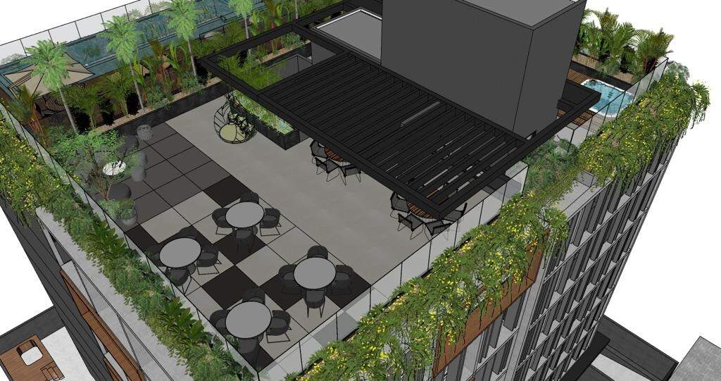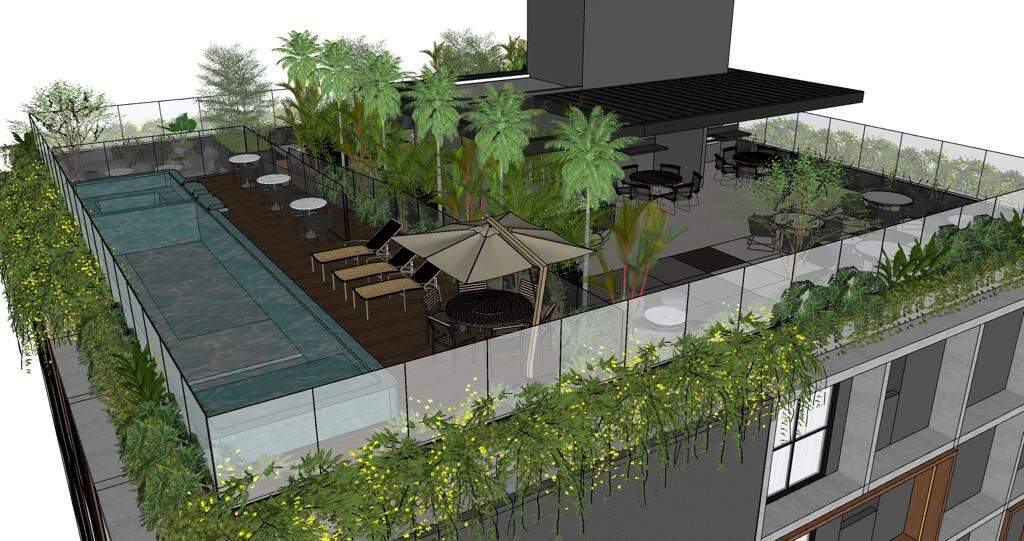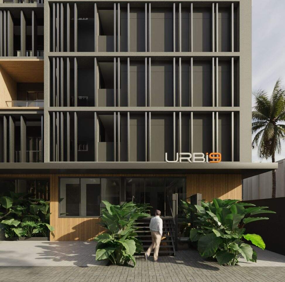 Empreendimento com flats de 22m² e 23m² possuindo espaço para quarto, cozinha e um banheiro.