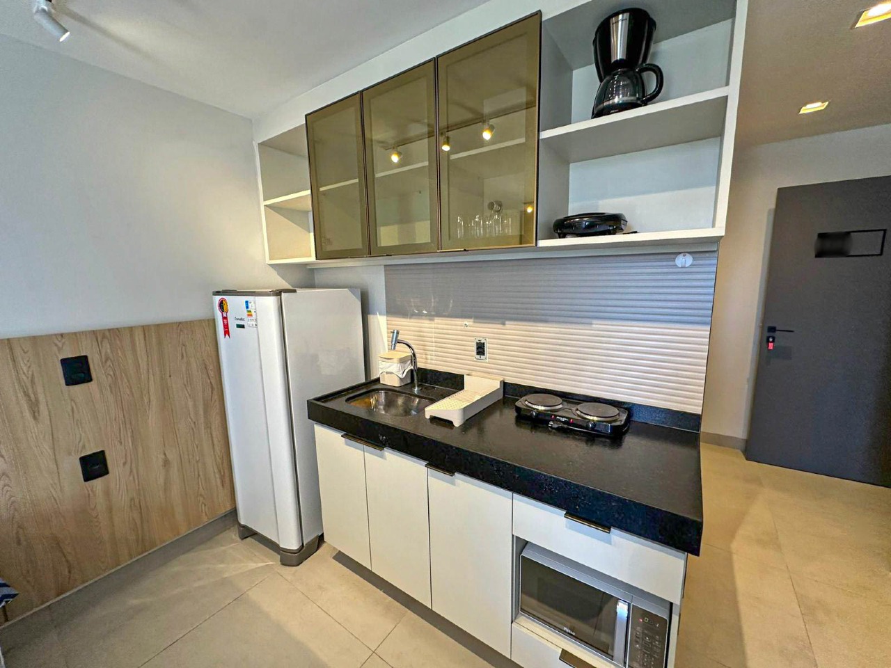 Flat pronto para morar, composto por quarto amplo, cozinha funcional com móveis projetados e banheiro social com ótima disposição.