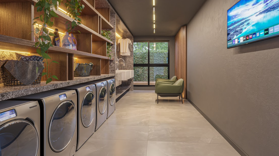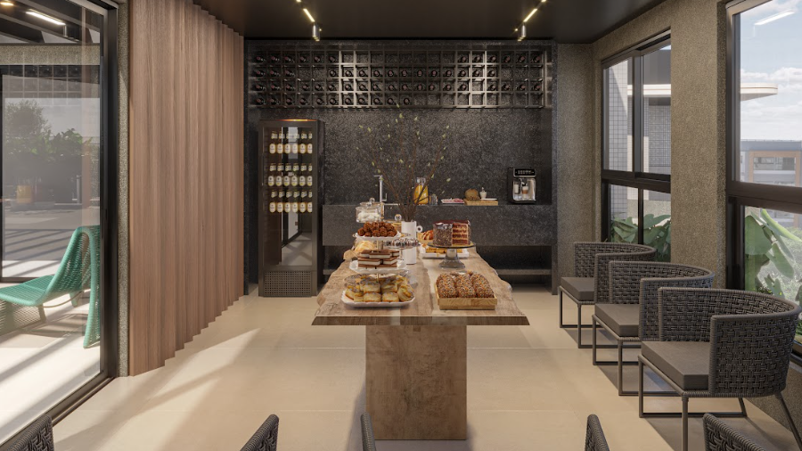 Além disso o empreendimento conta com uma área de lazer diversificada para garantir a melhor experiência, com salão de jogos, academia, auditório, restaurante, lavanderia, playground, piscina com deck, lounges, mercado e muito mais para oferecer o equilíbrio ideal entre conforto e modernidade.