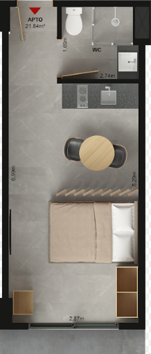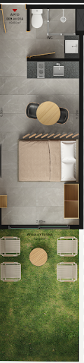 Plantas de 19m² a 36m² possuindo amplo espaço, cozinha e banheiro (opções de plantas com e sem varanda).