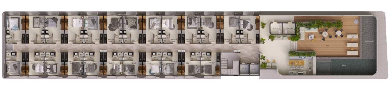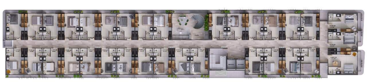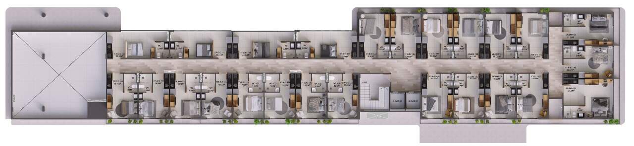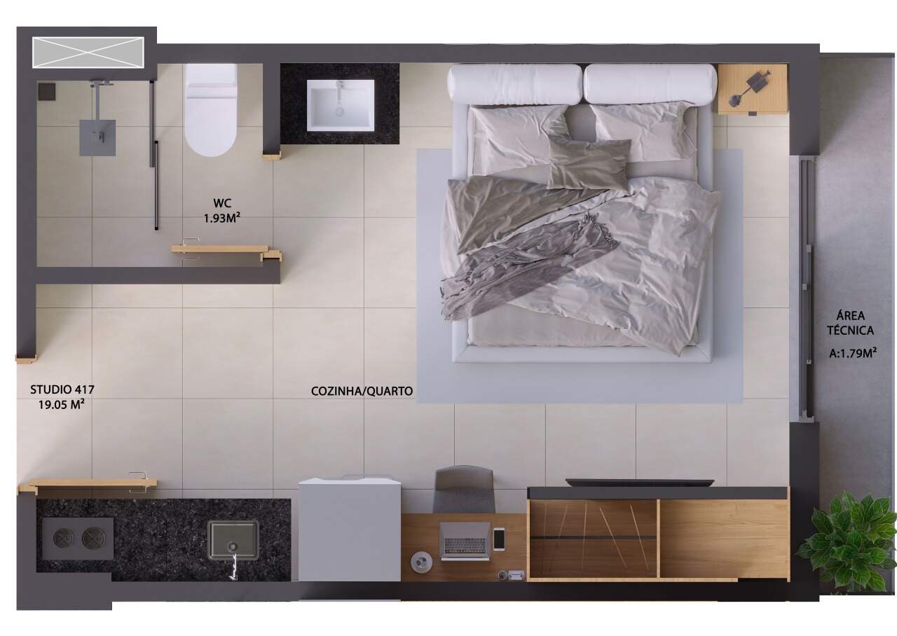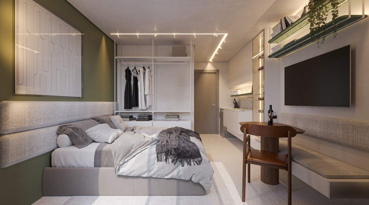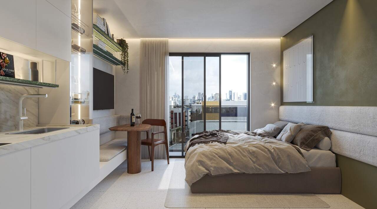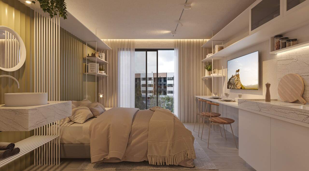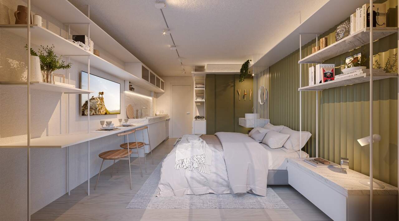 Este empreendimento conta com stúdios de 20² à 29m² possuindo quarto compacto com banheiro, elevador, vagas de garagem rotativas.