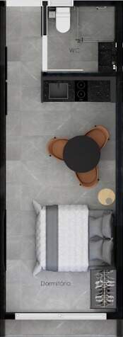 Flat com quarto aconchegante, cozinha de apoio, banheiro social, ideal para quem quer conforto, praticidade e qualidade de vida perto do mar.