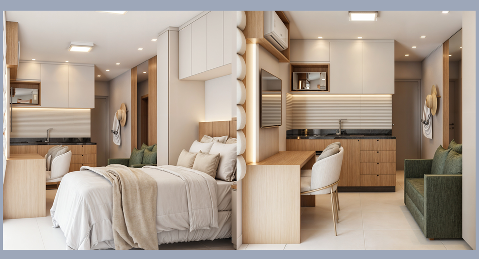Equipado com espaço para um quarto confortável, banheiro moderno e uma cozinha prática, ele proporciona a harmonia que você merece, reunindo tudo o que é essencial para seu dia a dia.