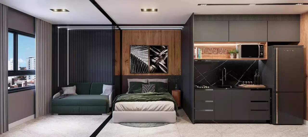 Pensado para aqueles que desejam uma vida prática e de qualidade, este flat conta com banheiro moderno e uma cozinha inteligente, atendendo a todas as necessidades com sofisticação e conforto.
