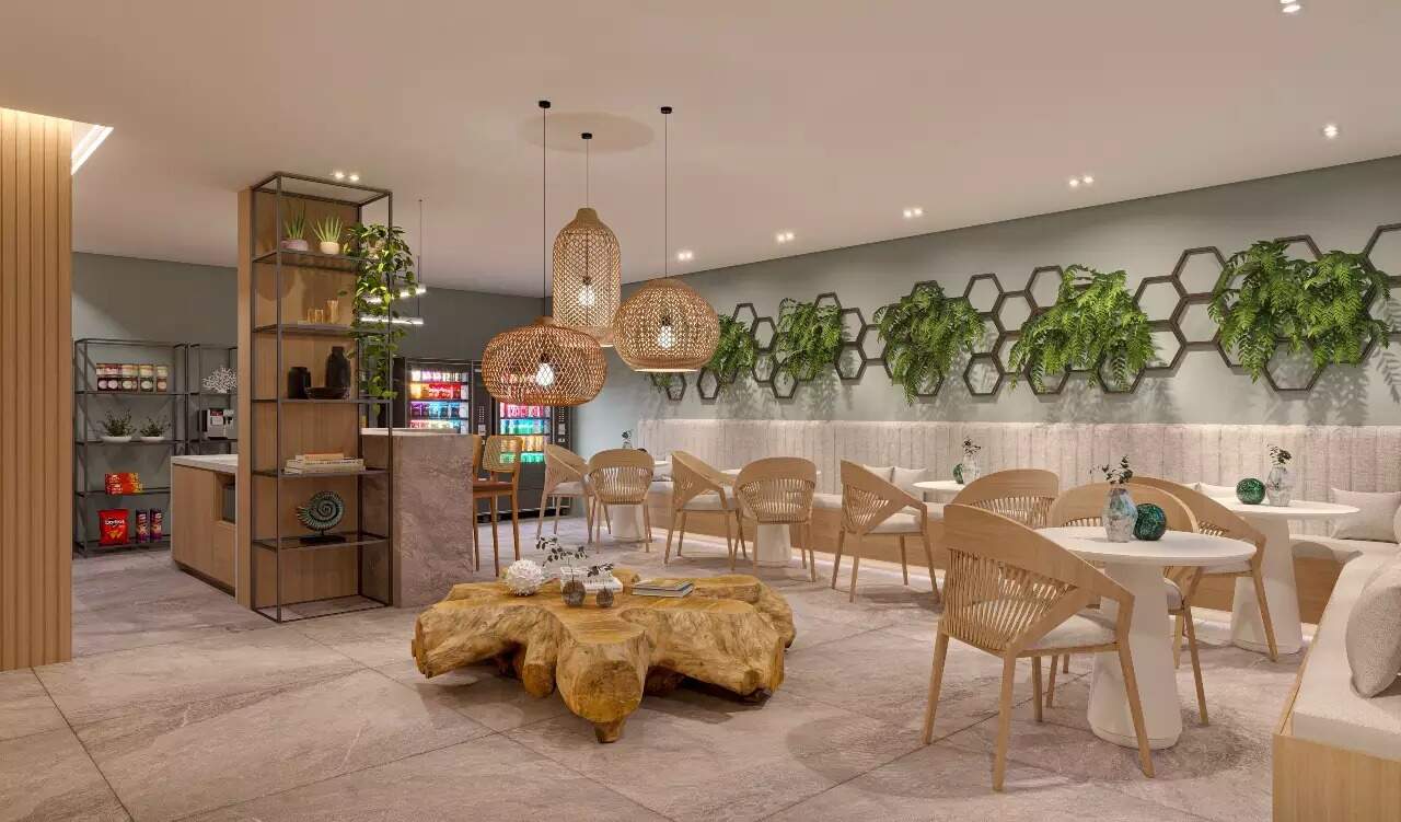 > Prédio com piscina, churrasqueira, coworking, mini market, lavanderia, academia e espaço gourmet;