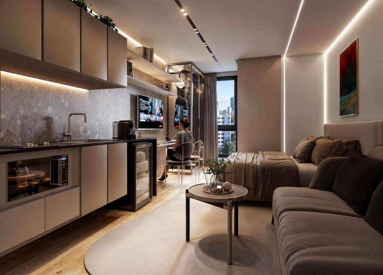 Equipado com um quarto confortável, banheiro moderno e uma cozinha prática, ele proporciona a harmonia que você merece, reunindo tudo o que é essencial para seu dia a dia.